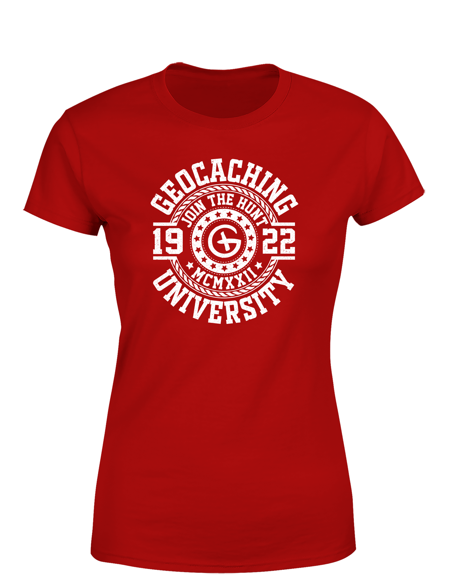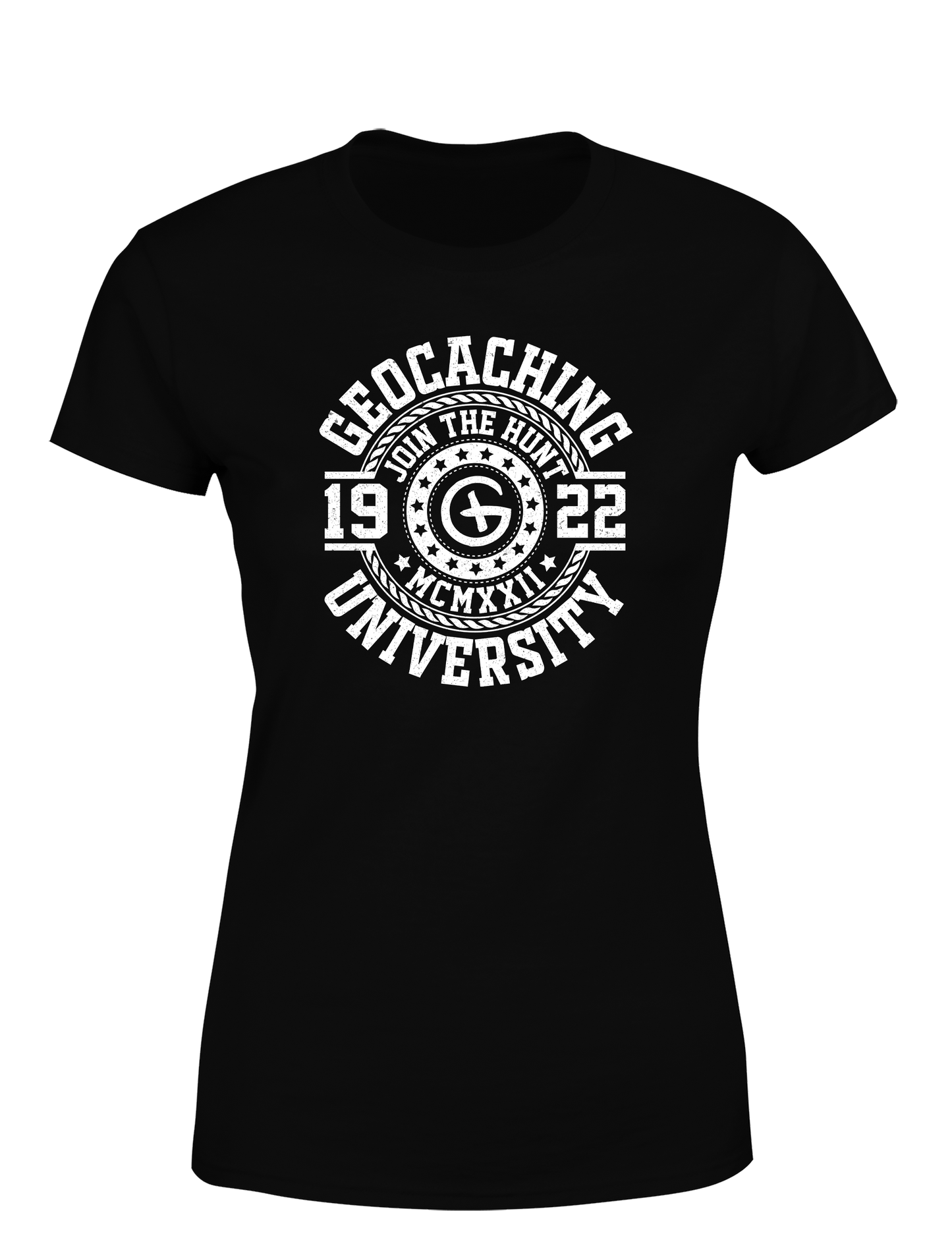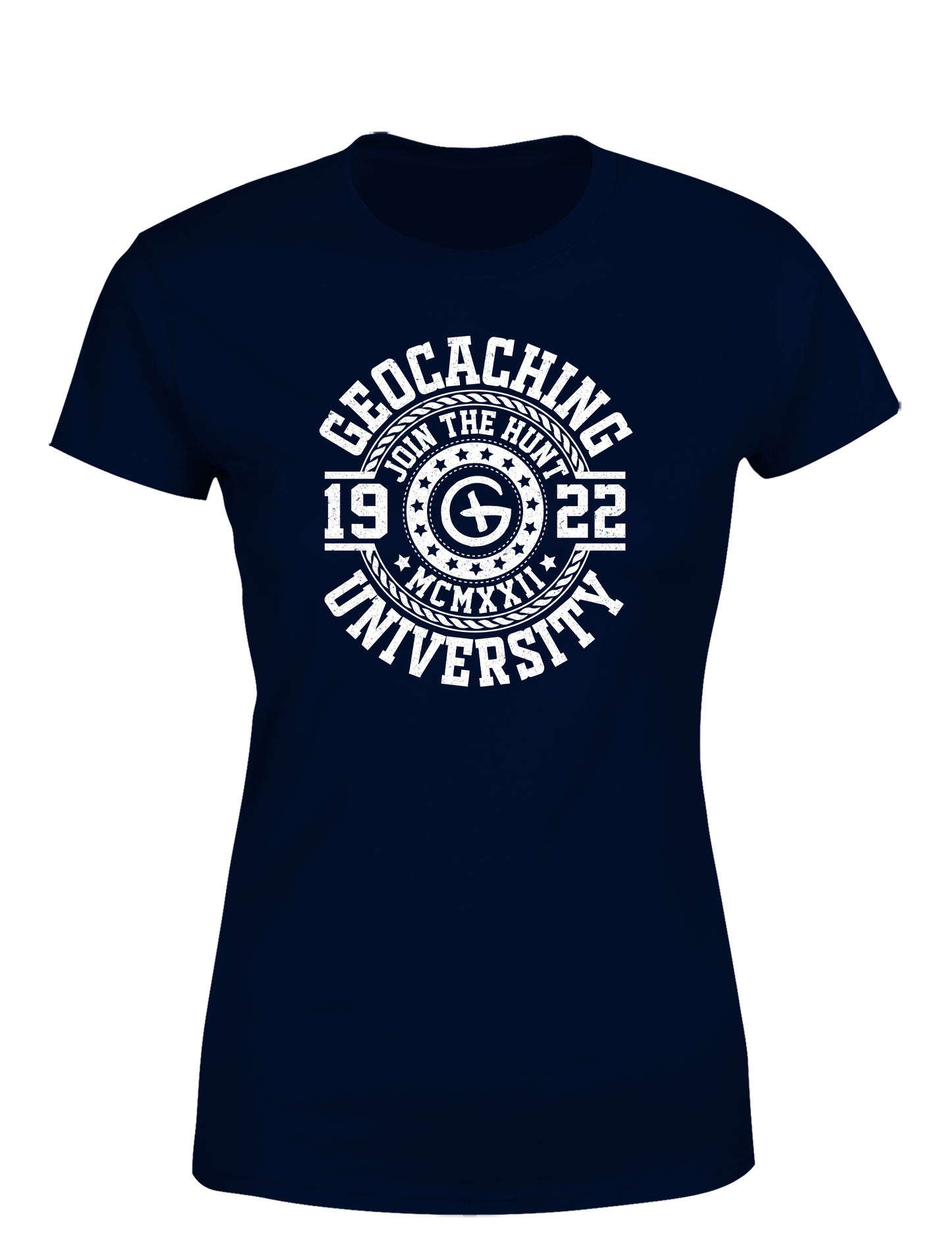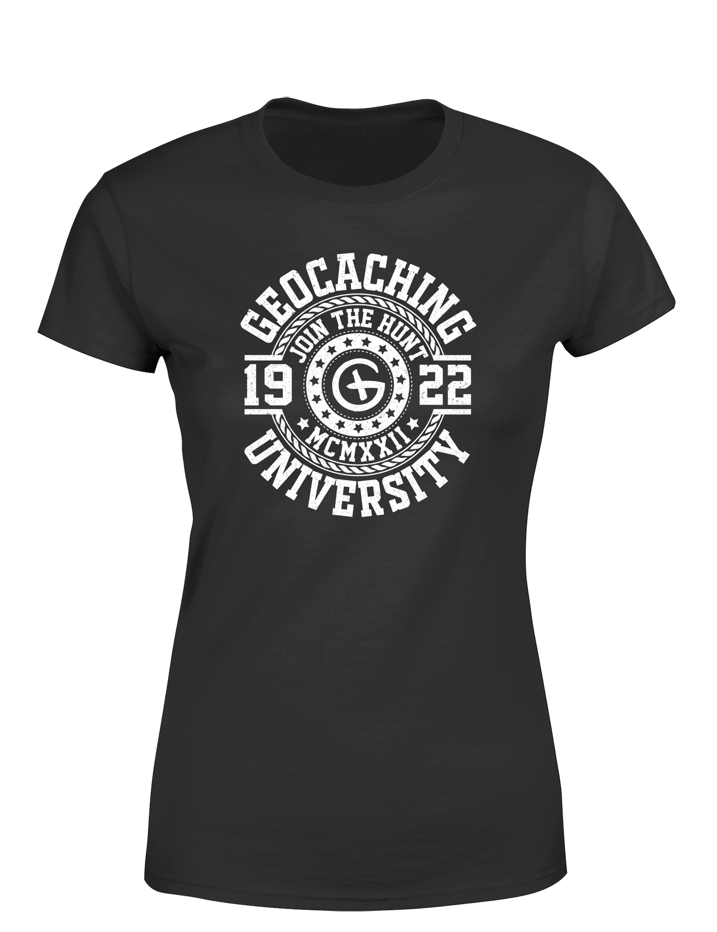 Geocaching University – Damen T-Shirt im Retro College Stil | Lustiges Geocacher Shirt für Schatzsucherinnen & Outdoor-Fans