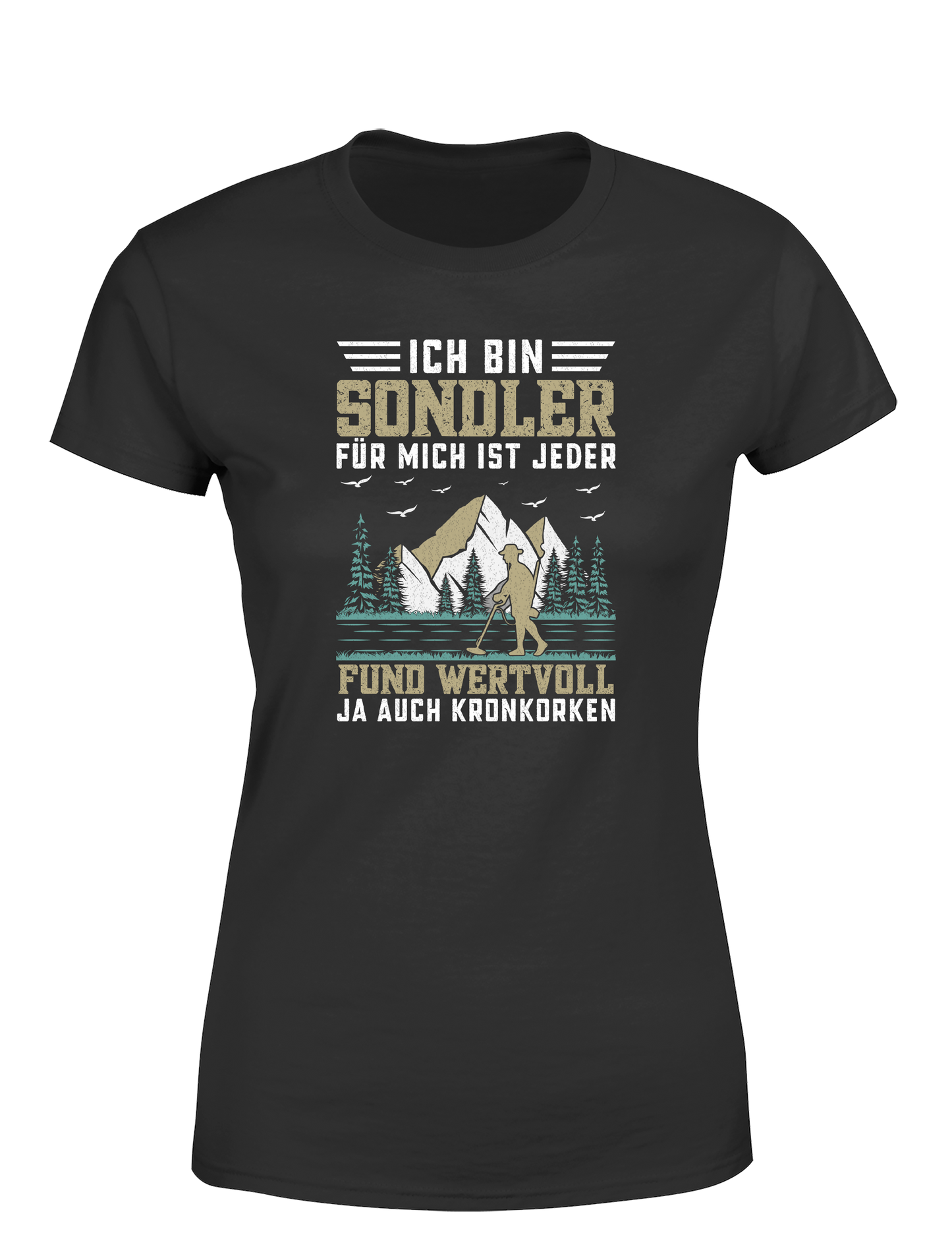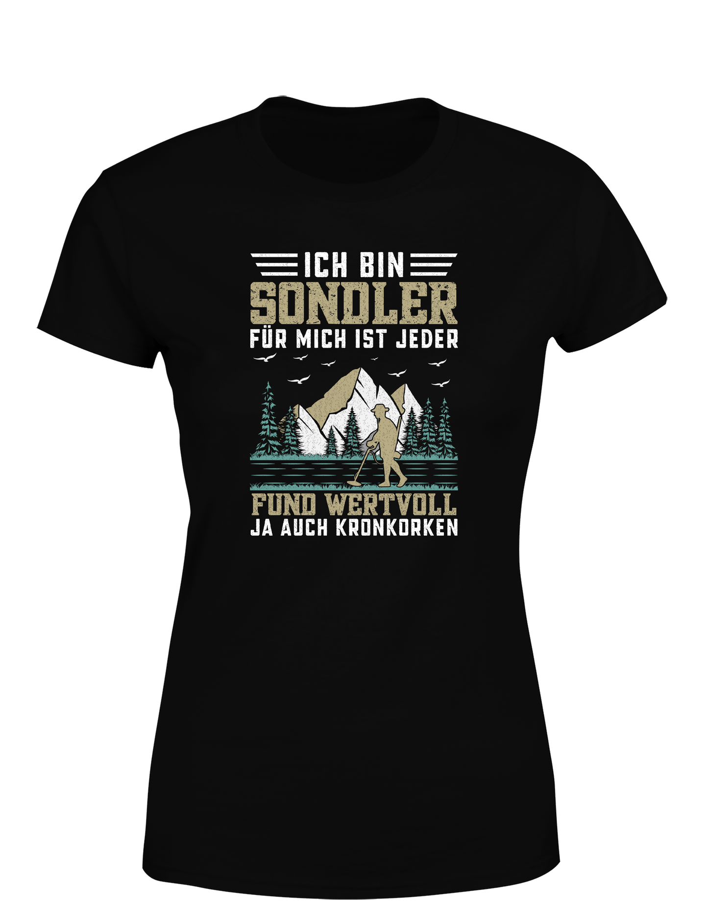 Ich bin Sondlerin – für mich ist jeder Fund wertvoll (ja, auch Kronkorken) – Damen T-Shirt im Retro Stil | Lustiges Shirt für Schatzsucherinnen, Freizeit & Geschenkidee