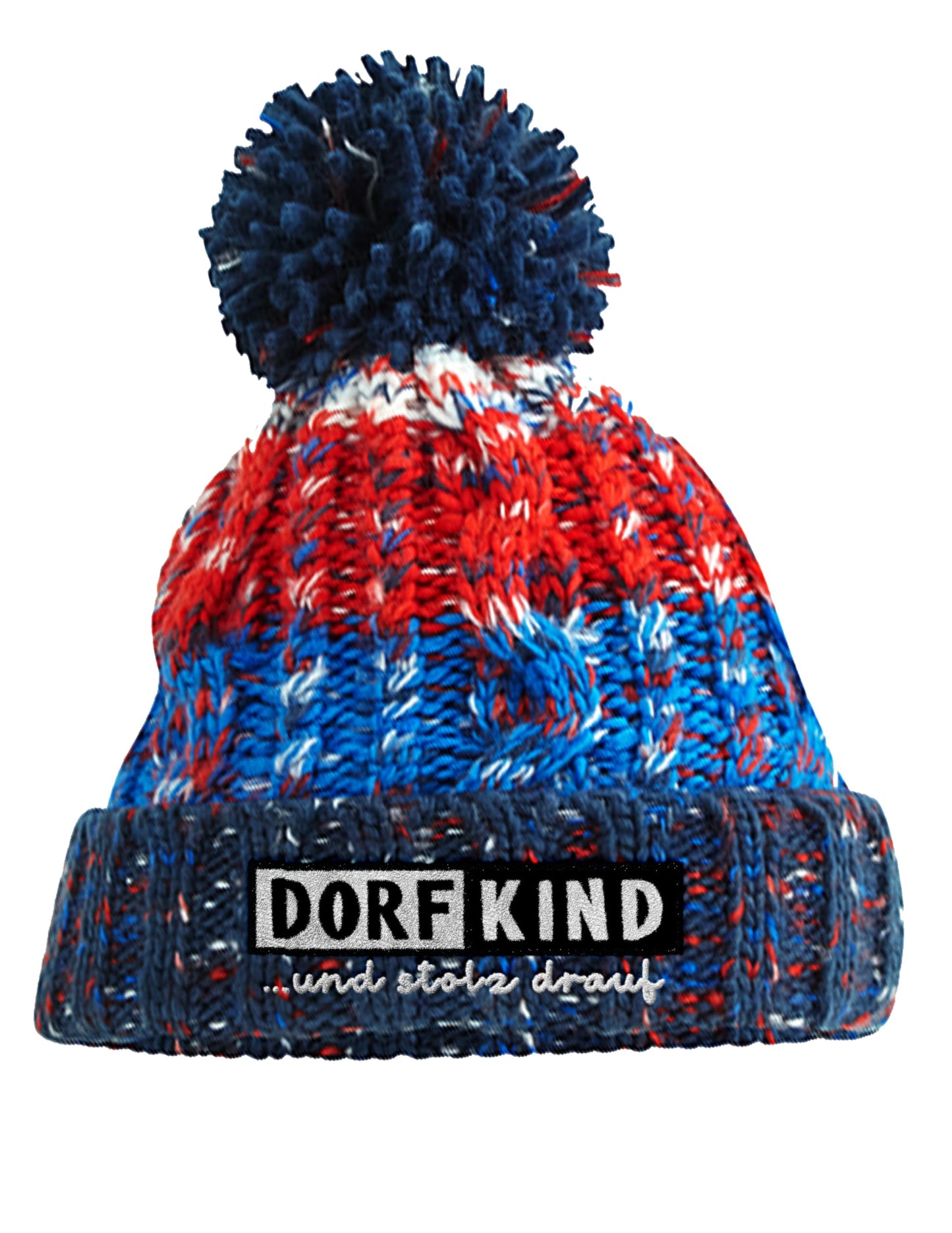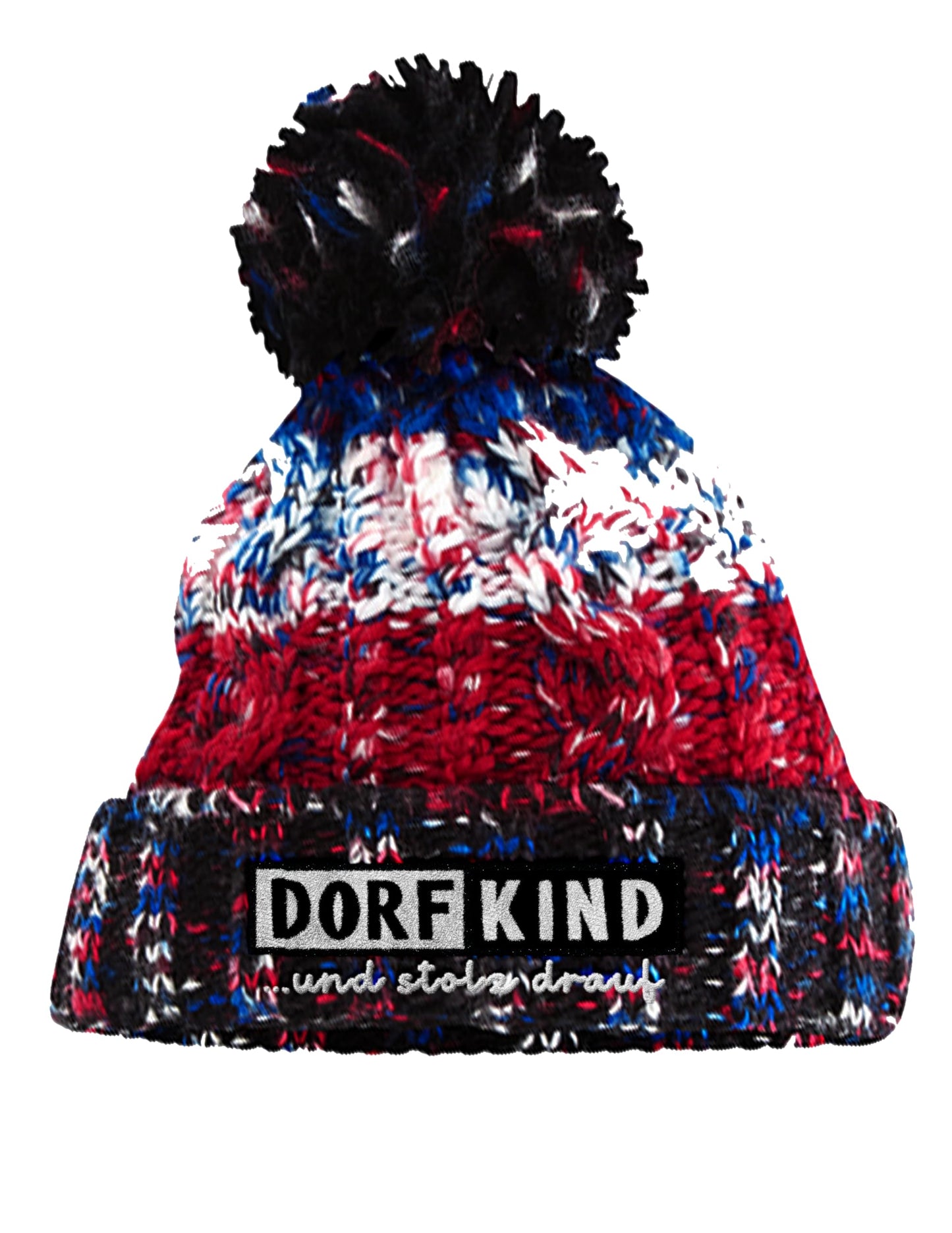 Gefertigt wird die Mütze nach hohen Qualitätsstandards. Das Polyacryl ist farbecht und pflegeleicht, der Bommel hochwertig verarbeitet und fest vernäht. Das Label mit der Stickerei „DORFKIND - und stolz drauf“ wird mit präziser Sticktechnik aufgebracht und bleibt dauerhaft formbeständig. Durch das herausnehmbare Label im Inneren kann die Mütze neutralisiert werden, was sie auch für personalisierte Projekte oder Vereine interessant macht. Die Kombination aus Funktion, Design und Qualität macht sie zu einem langlebigen Begleiter in der kalten Jahreszeit.