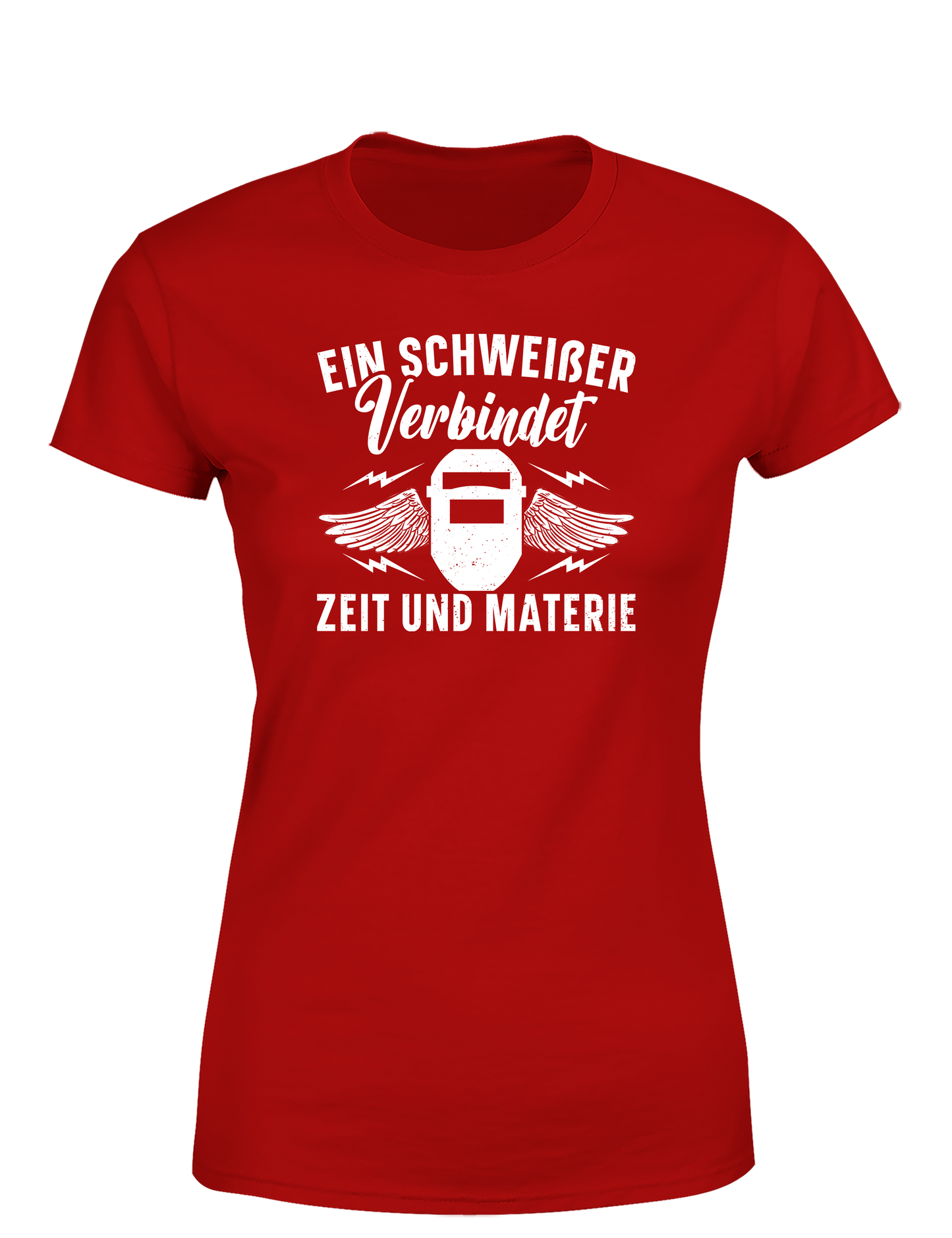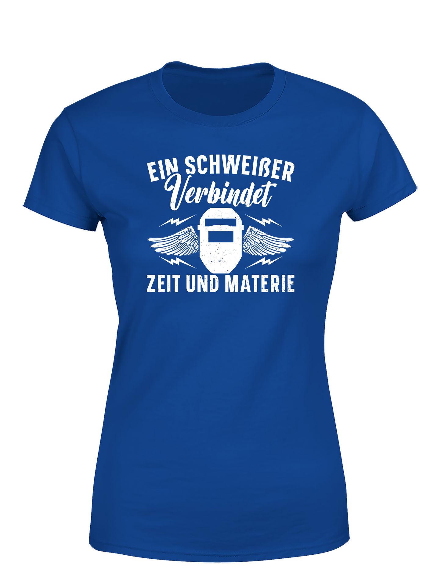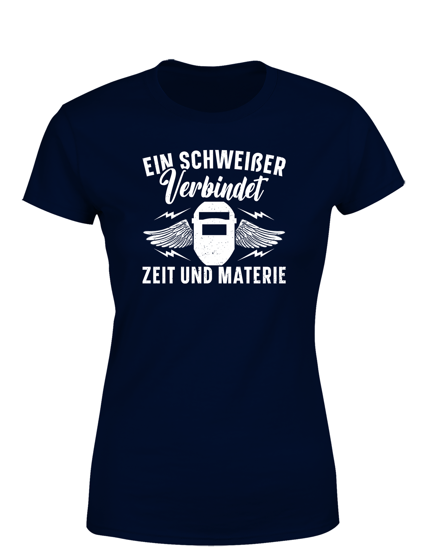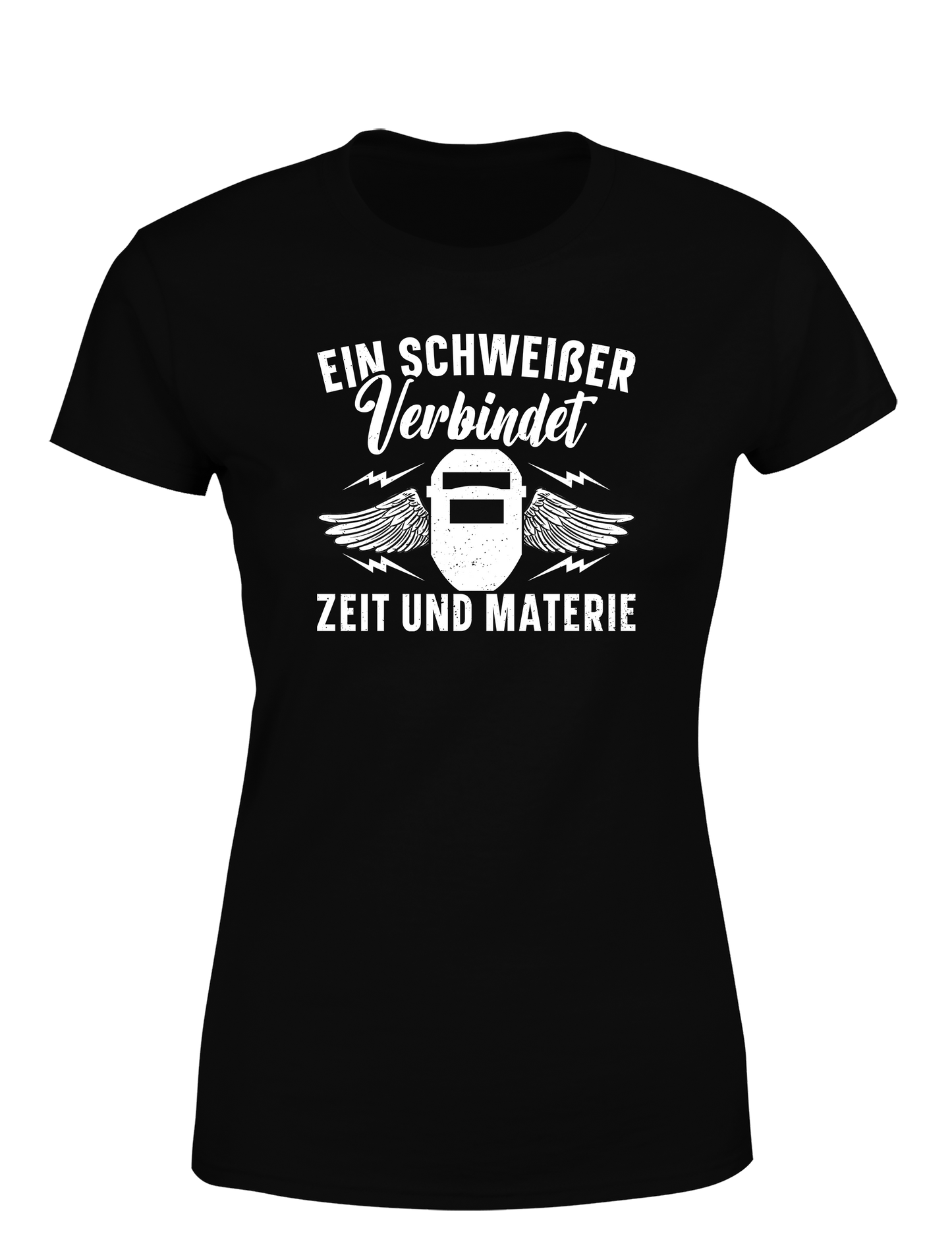 Stylisch, bequem und mit einer starken Botschaft: Das Damen T-Shirt „Ein Schweißer verbindet Zeit und Materie“ ist für alle Frauen gemacht, die ihr Handwerk mit Stolz und Leidenschaft leben.