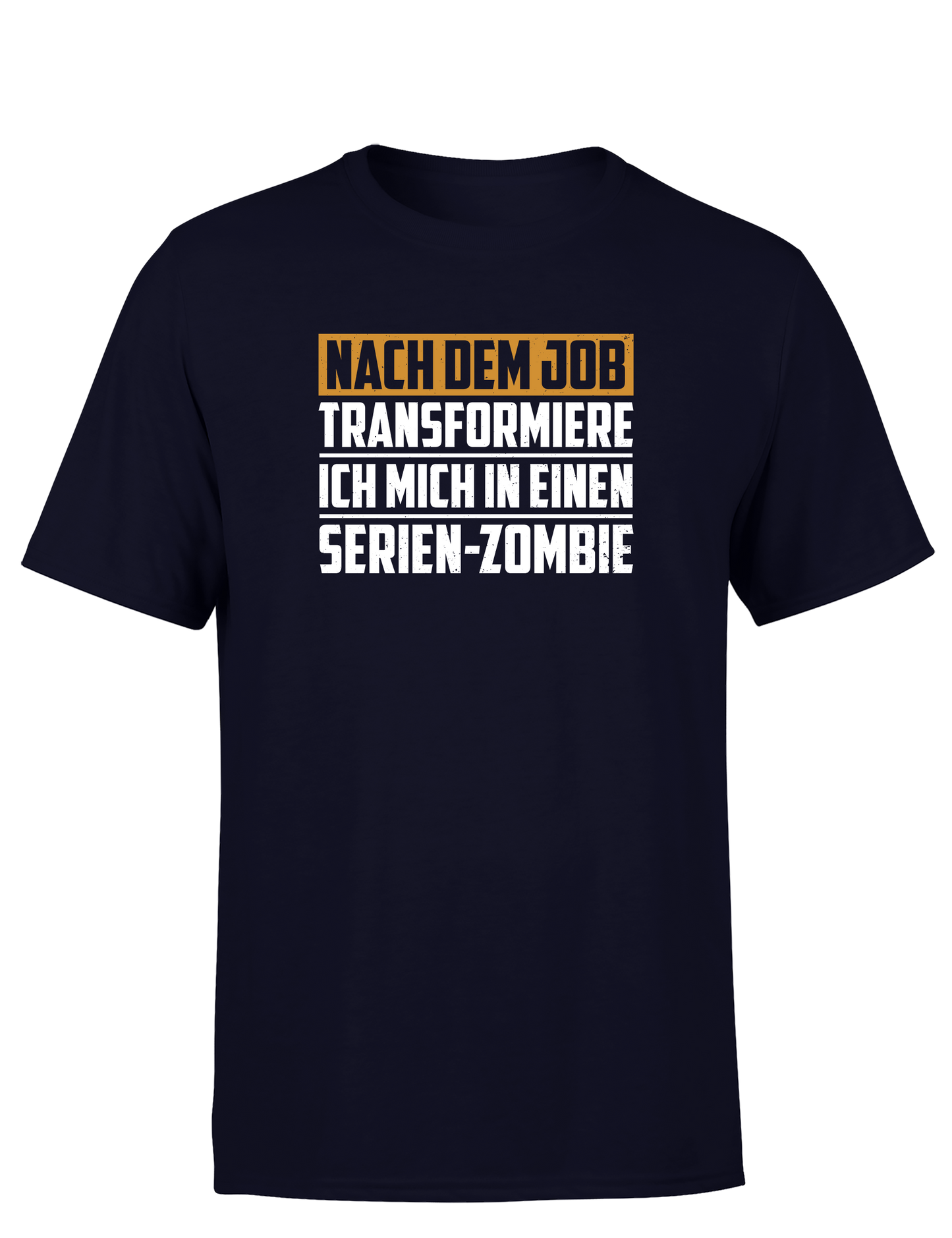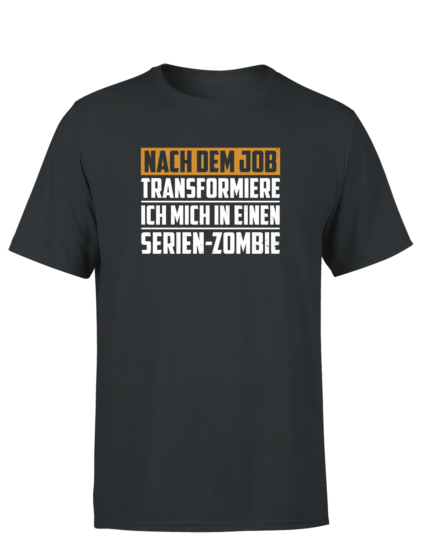 Dieses Herren T-Shirt mit dem Spruch „Nach dem Job transformiere ich mich in einen Serien-Zombie“ bringt genau das Gefühl auf den Punkt, das viele nach Feierabend kennen.