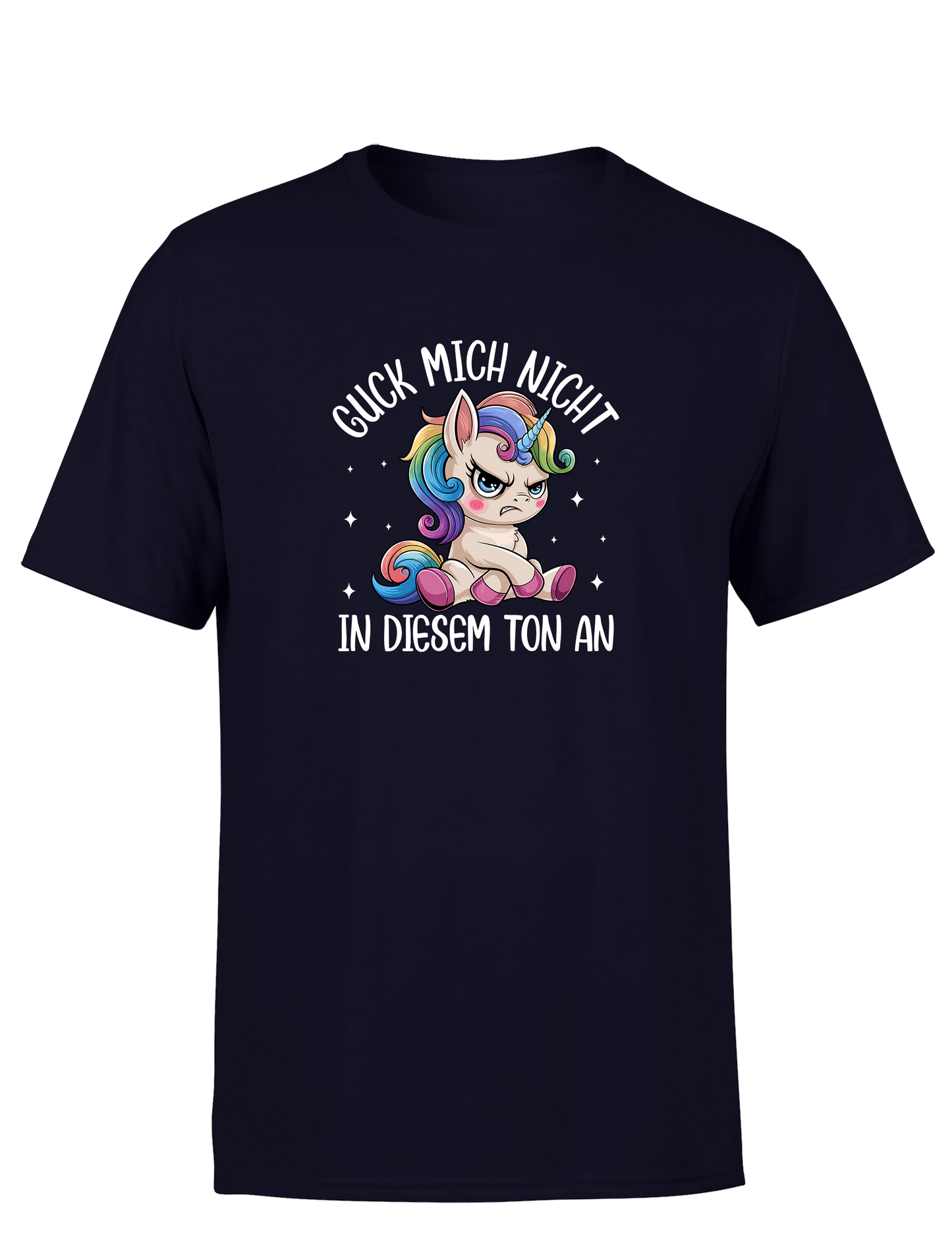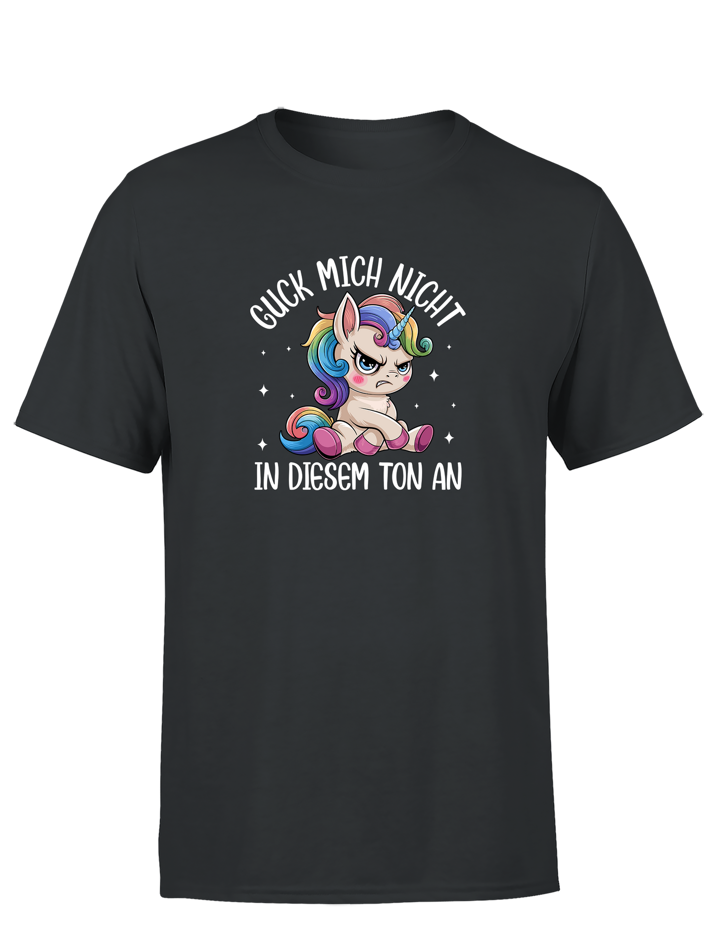Lustiges Herren T-Shirt „Guck mich nicht in diesem Ton an“ | Sarkastisches Einhorn Shirt für Männer