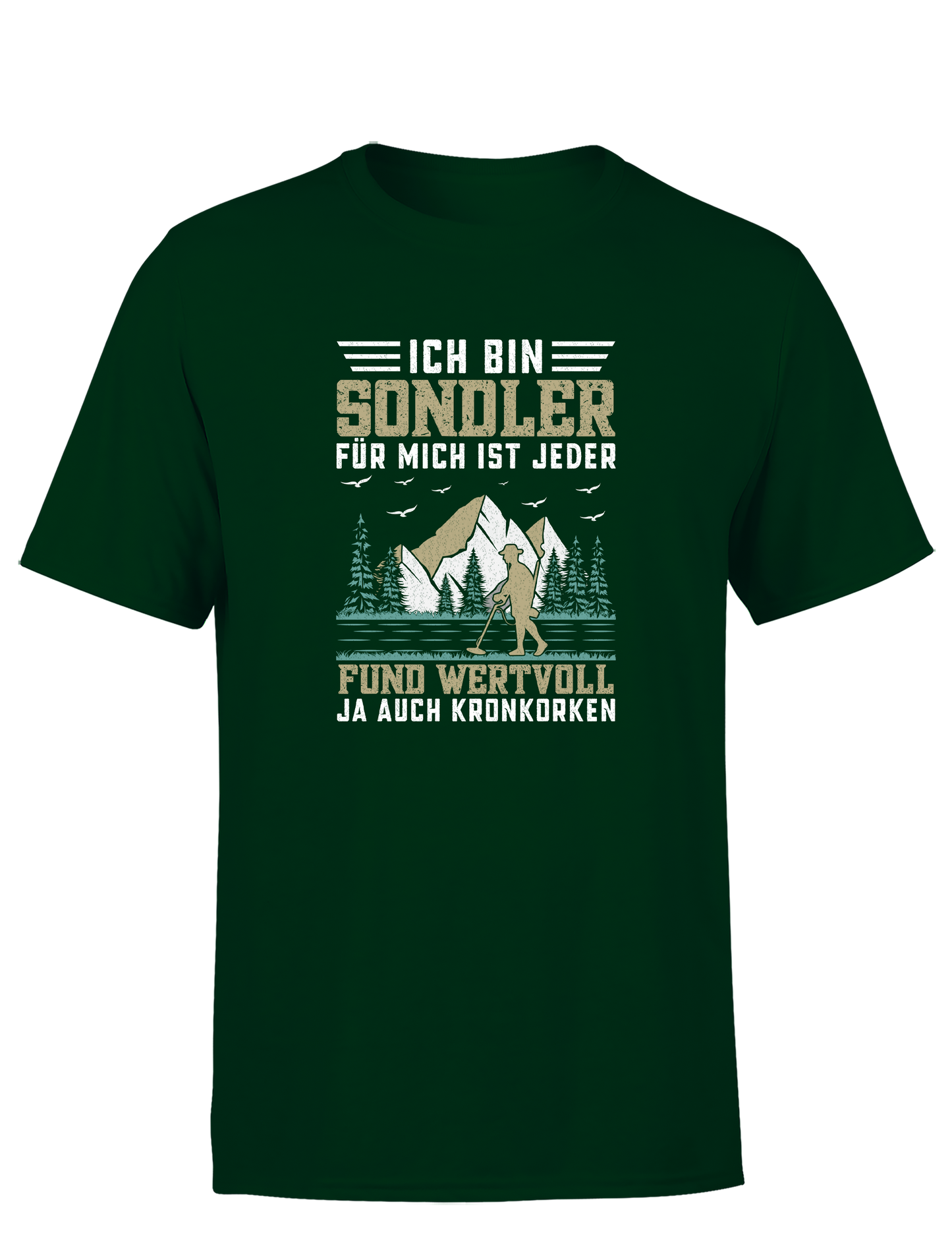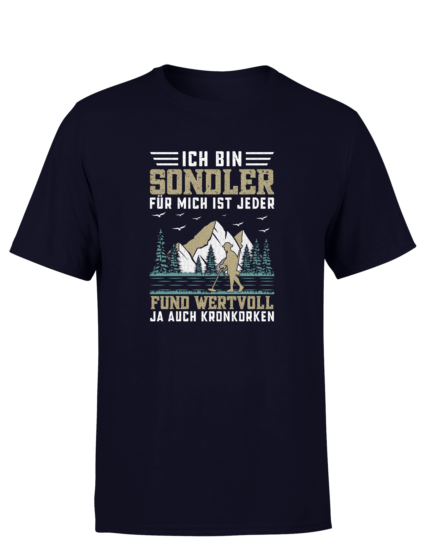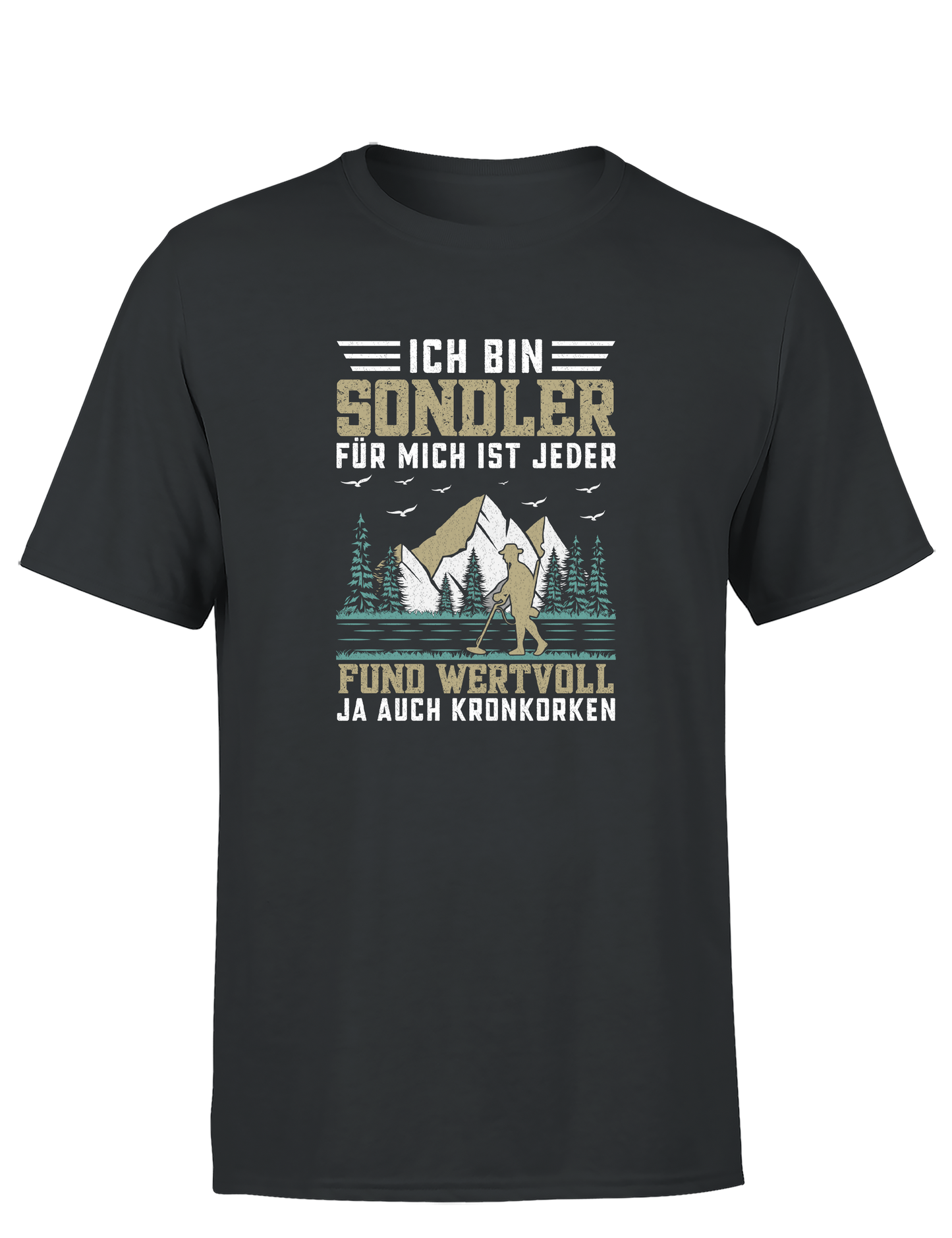 Ob Münze, Relikt oder Kronkorken – ein Fund ist ein Fund! Mit dem Herren T-Shirt „Ich bin Sondler – für mich ist jeder Fund wertvoll (ja, auch Kronkorken)“ bringst du dein Hobby mit Humor auf den Punkt.