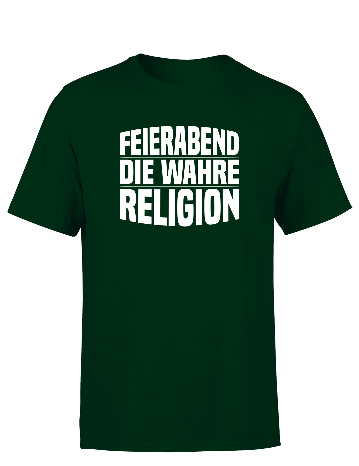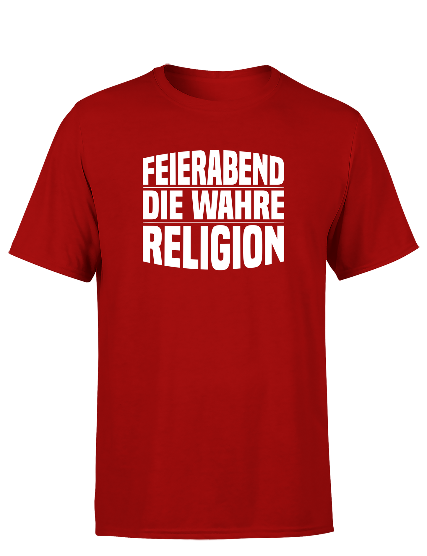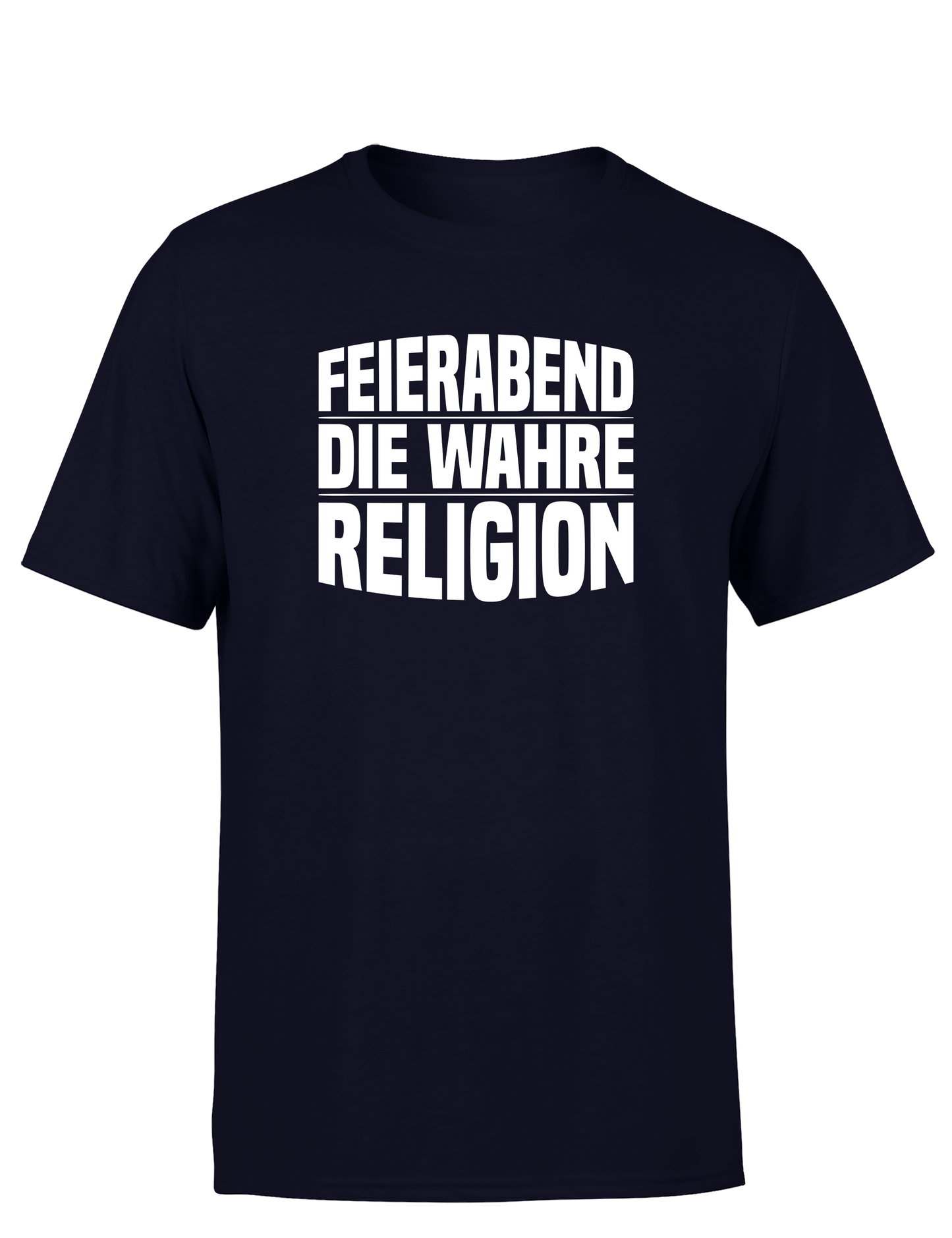 Dieses T-Shirt bringt die Wahrheit auf den Punkt: Feierabend ist die wahre Religion.