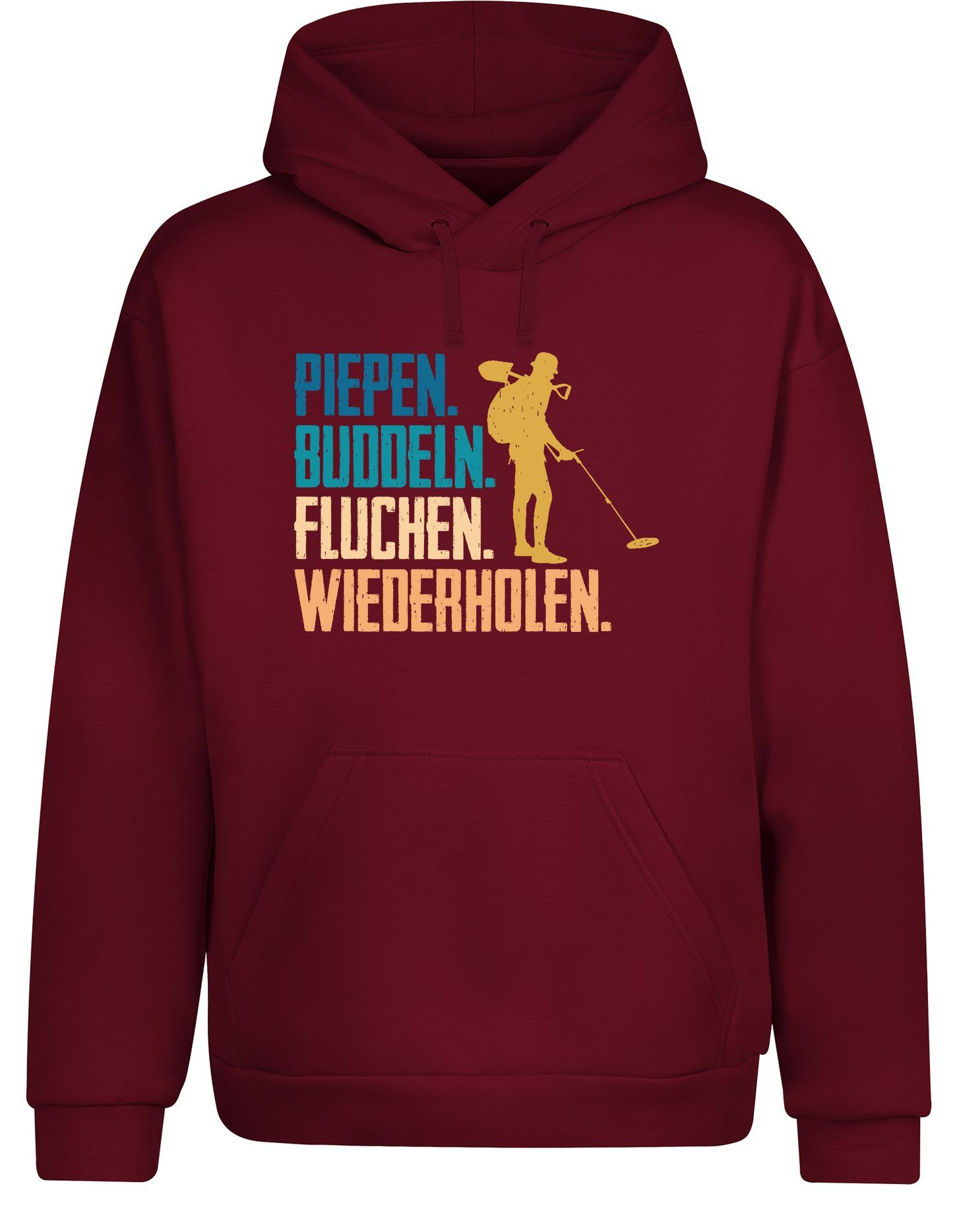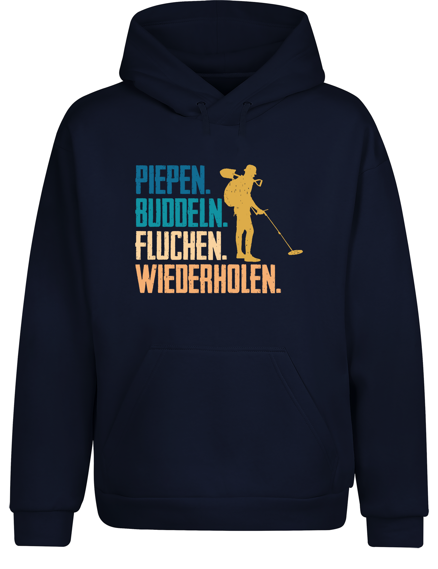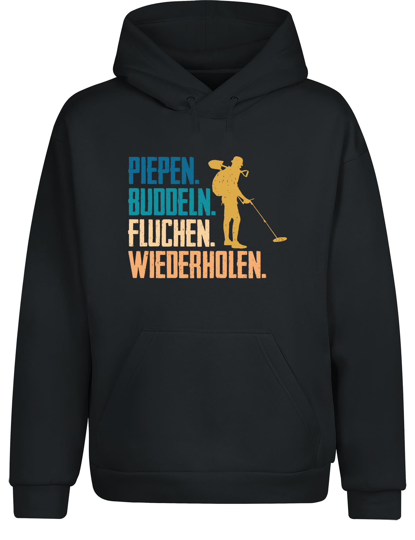 Piepen, buddeln, fluchen, wiederholen – Hoodie im Retro Stil | Lustiger Kapuzenpullover für Sondler, Hobby & Freizeit