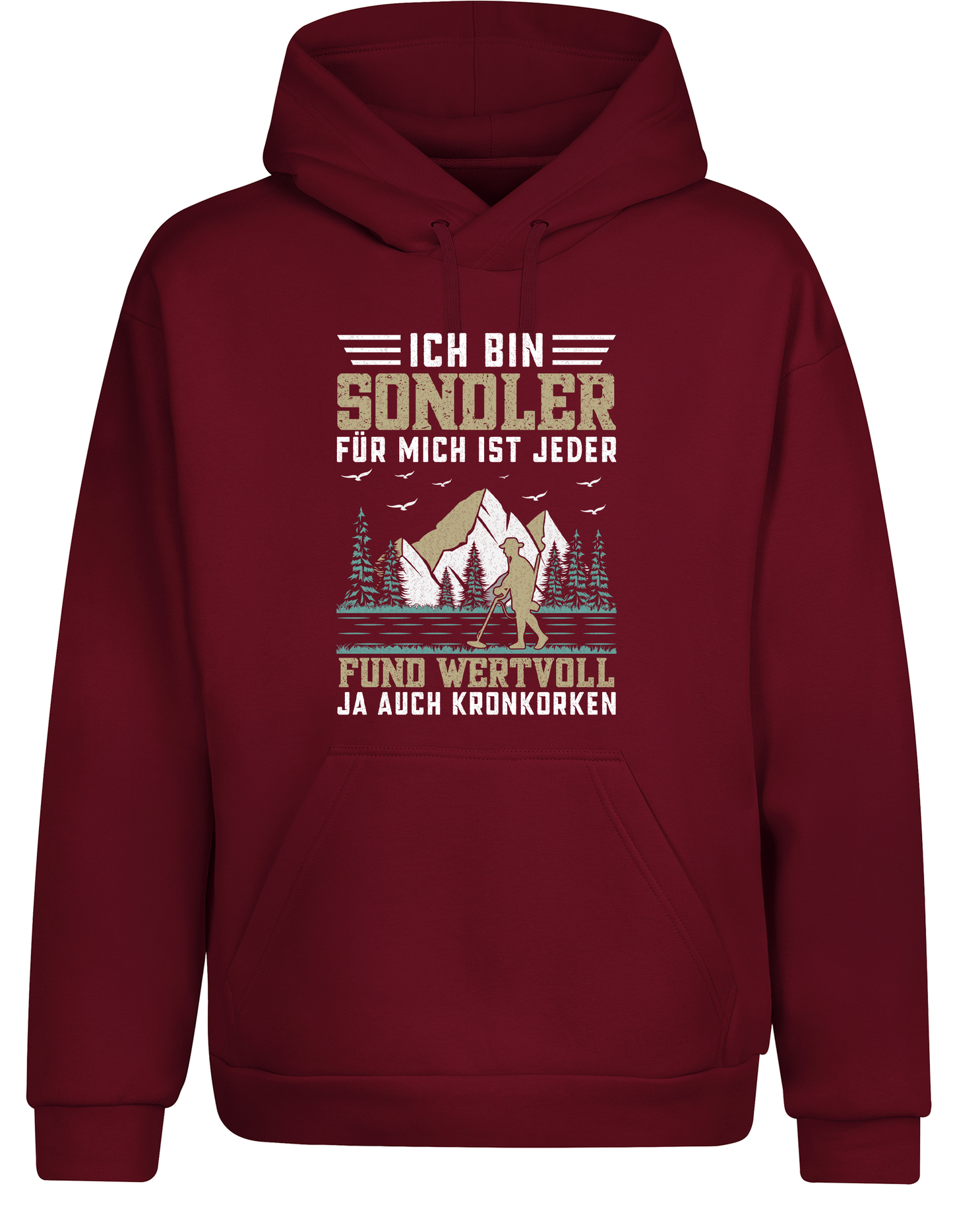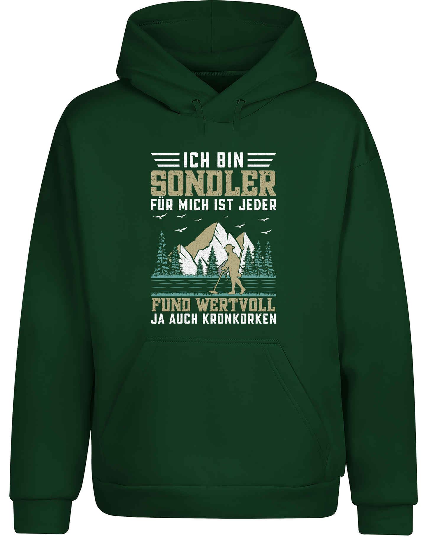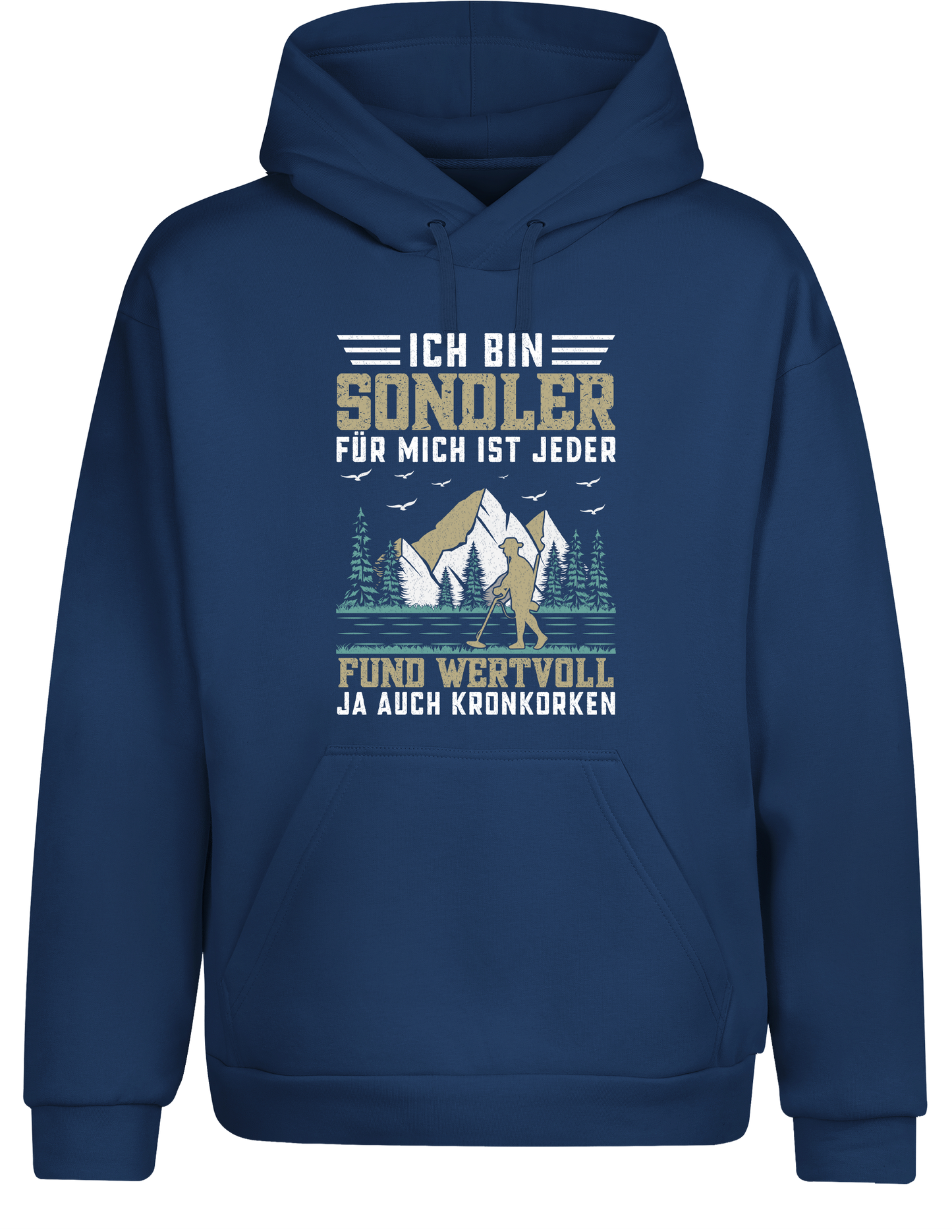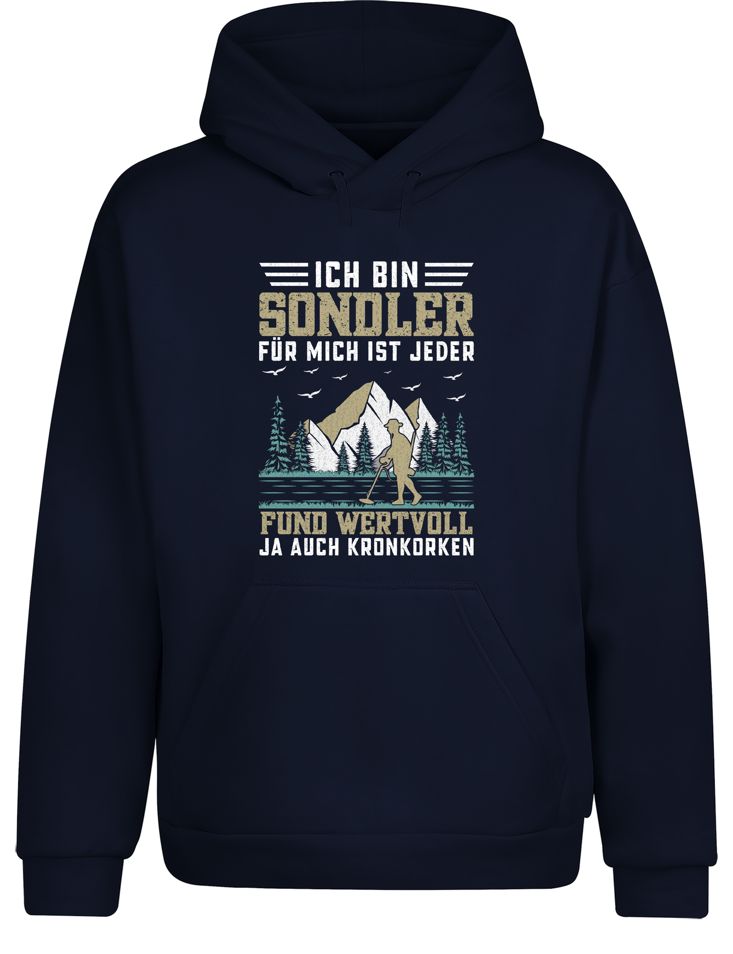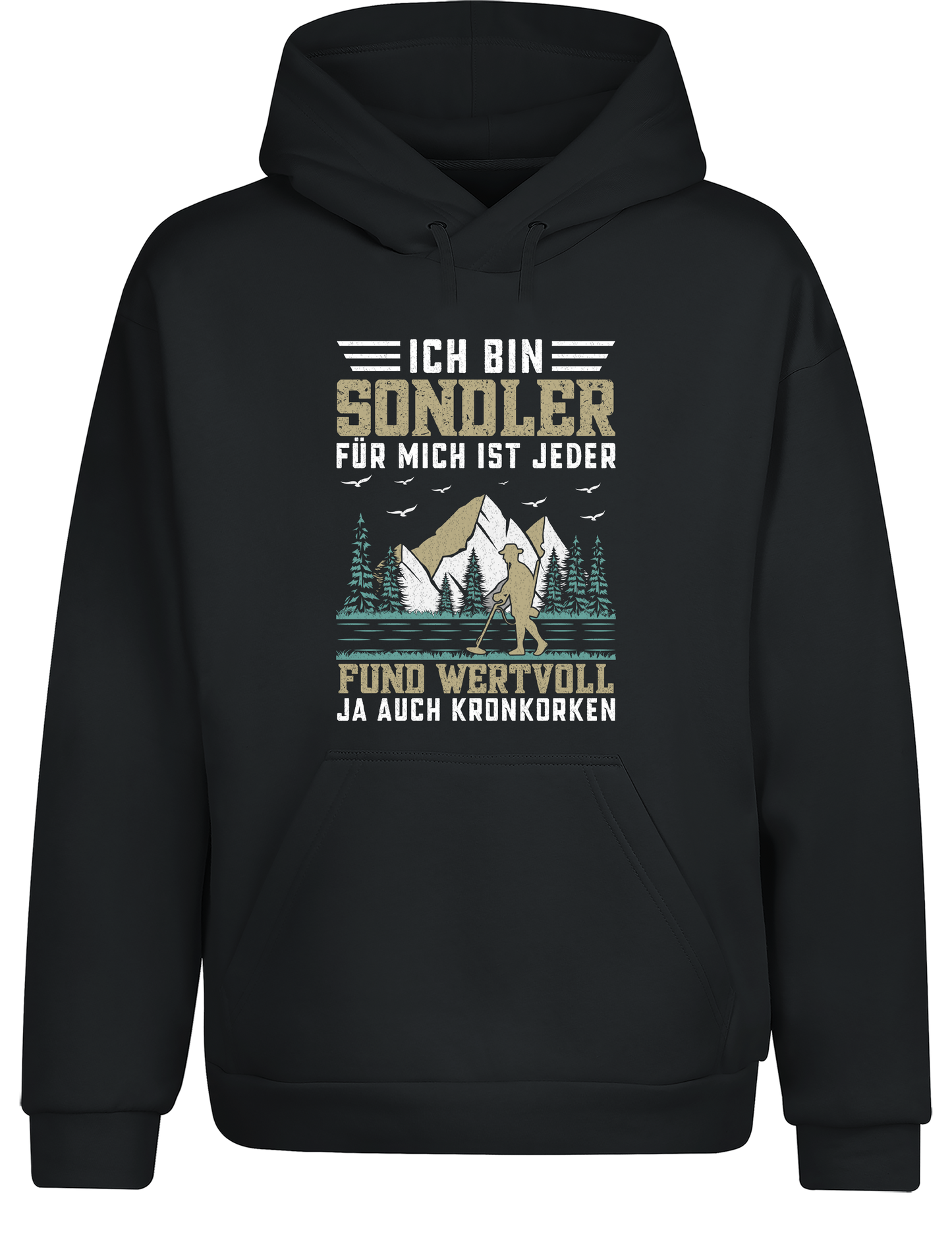 Kuschelig und mit Humor: Der Hoodie „Ich bin Sondler – für mich ist jeder Fund wertvoll (ja, auch Kronkorken)“ ist das perfekte Outfit für deine Schatzsuchen.