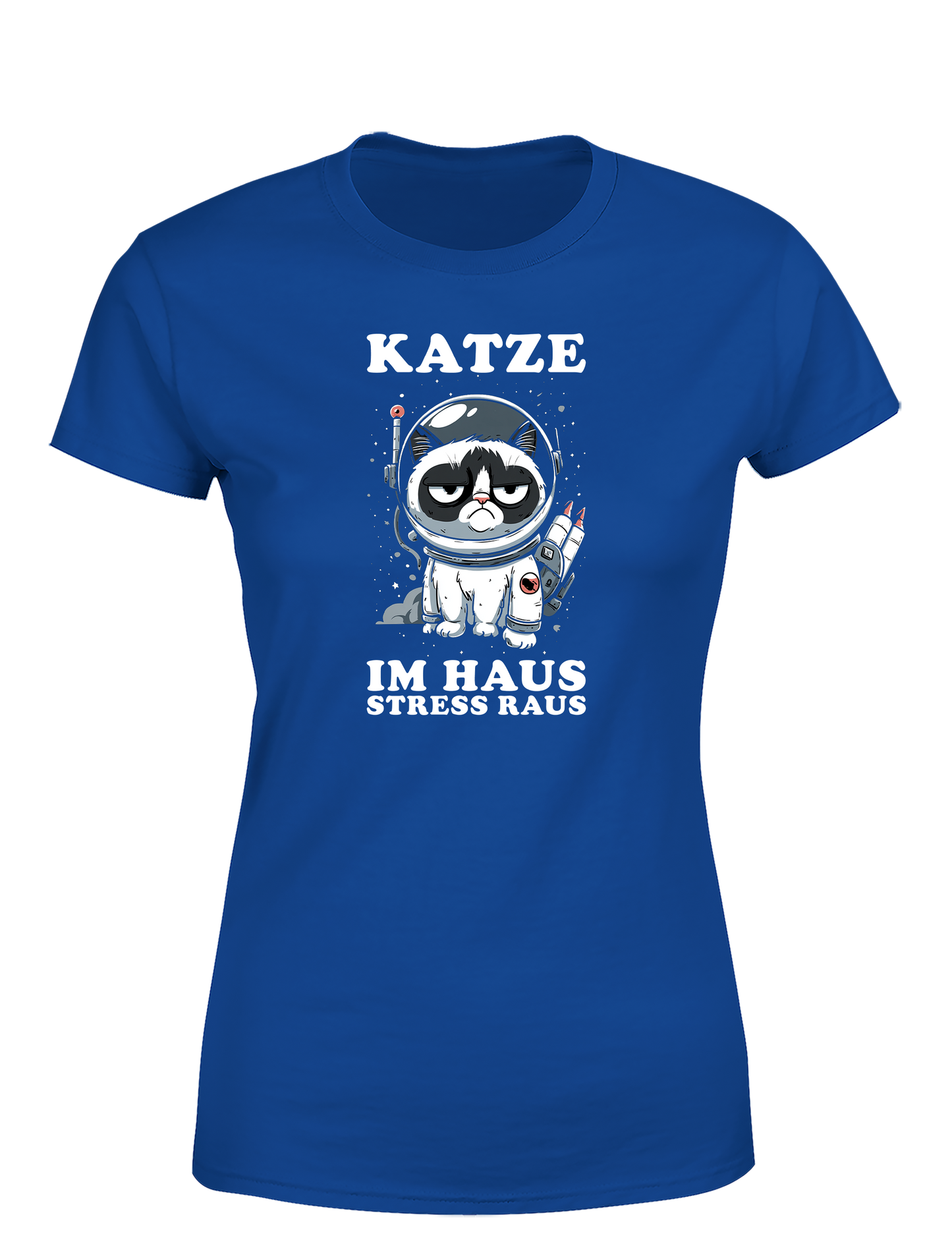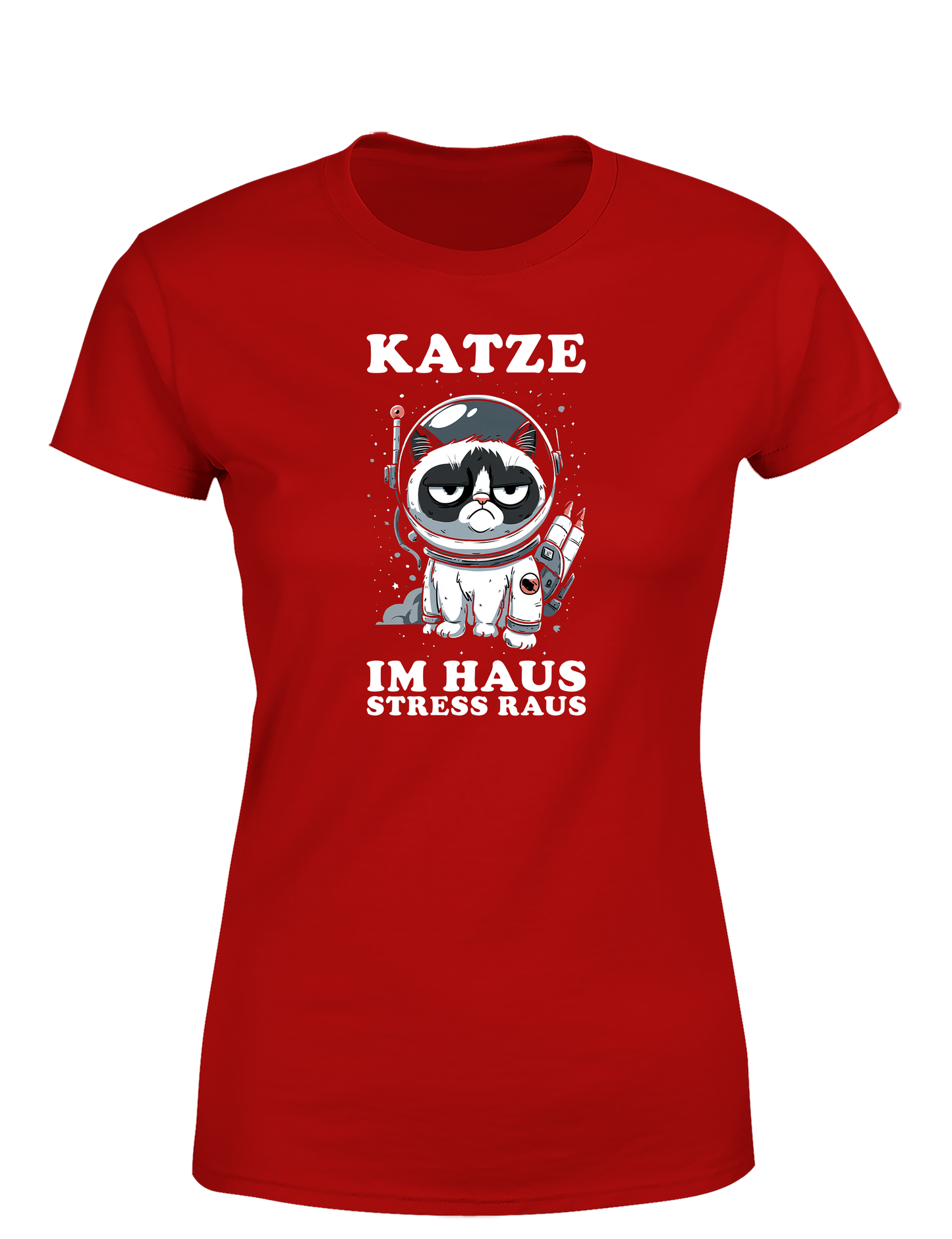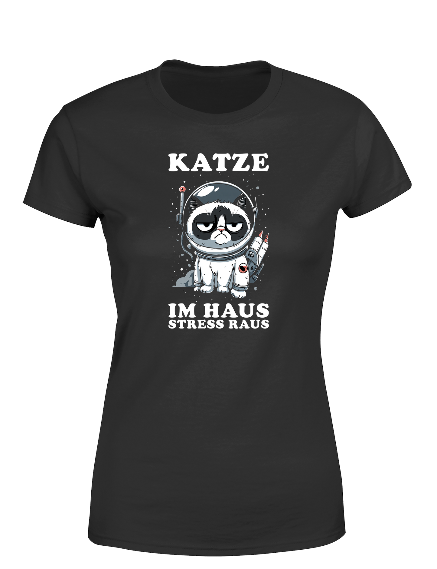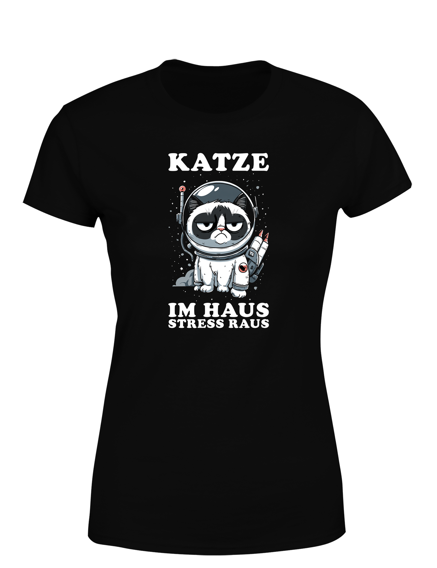 Katze im Haus, Stress raus – Damen T-Shirt im Retro Stil | Stylisches Damen Shirt für Katzenliebhaberinnen, Alltag, Freizeit & Geschenkidee