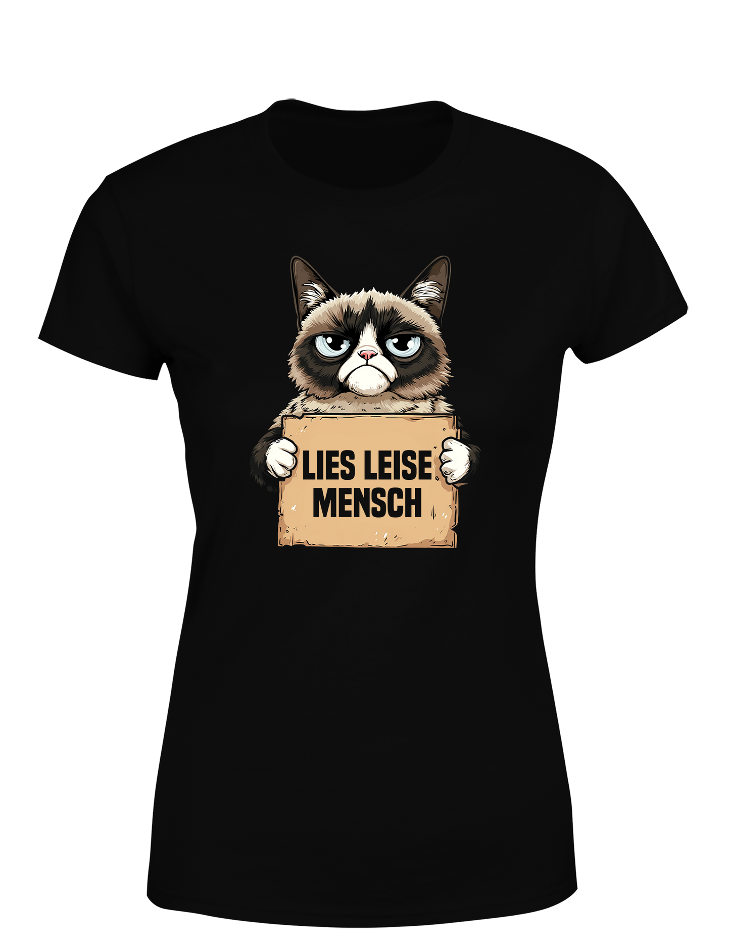 Bücher sind deine Welt und Ruhe beim Lesen ist für dich heilig? Dann passt dieses Damen T-Shirt mit dem Print „Lies leise Mensch“ perfekt zu dir!