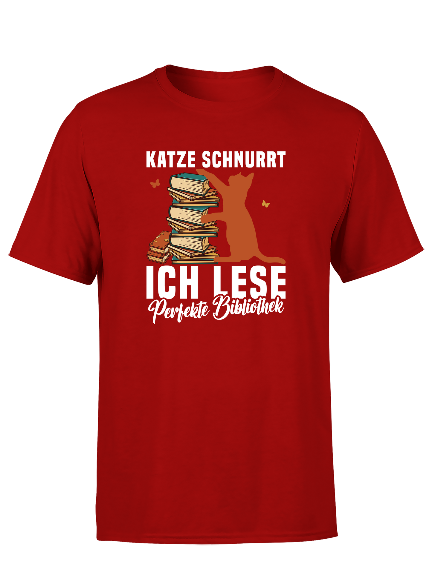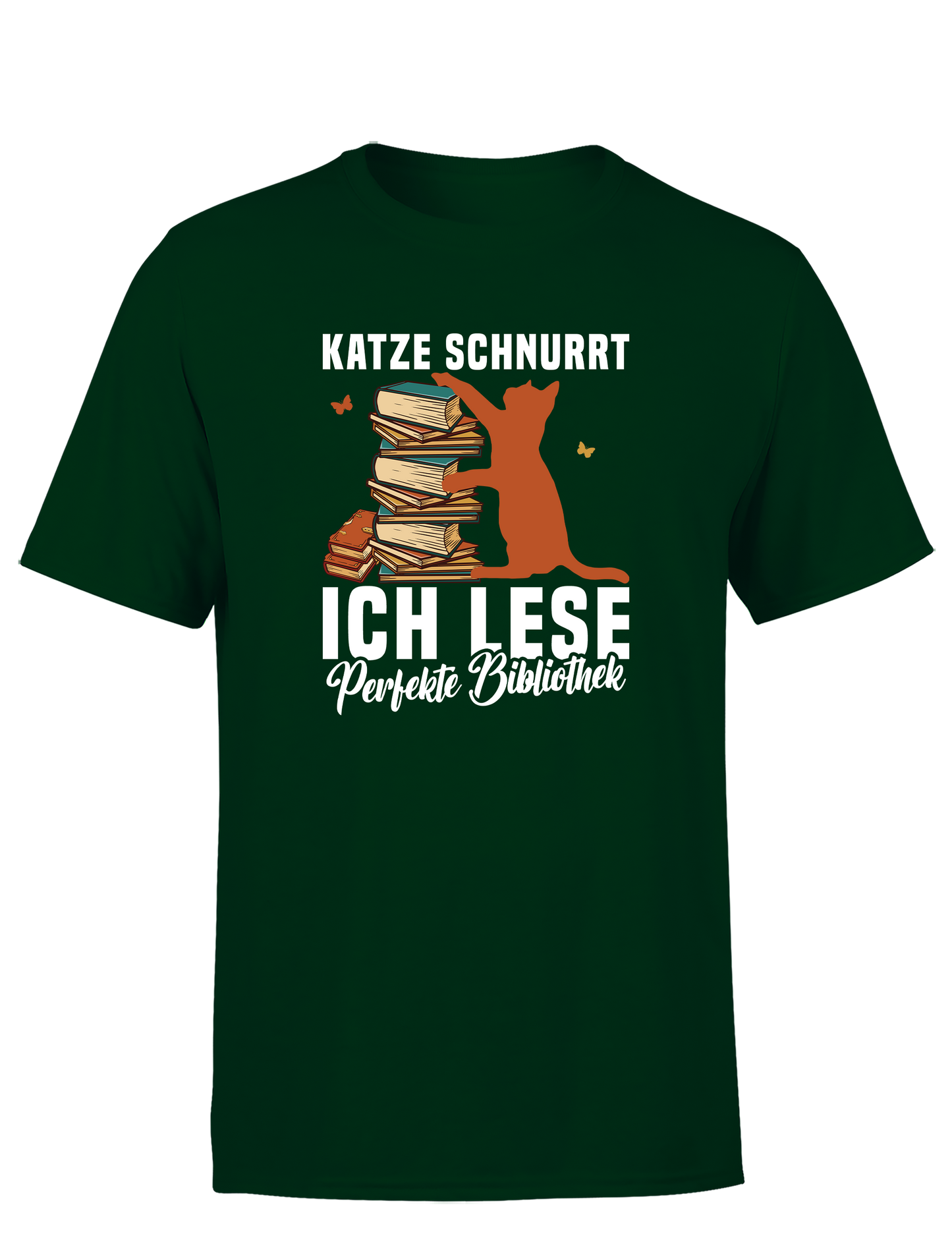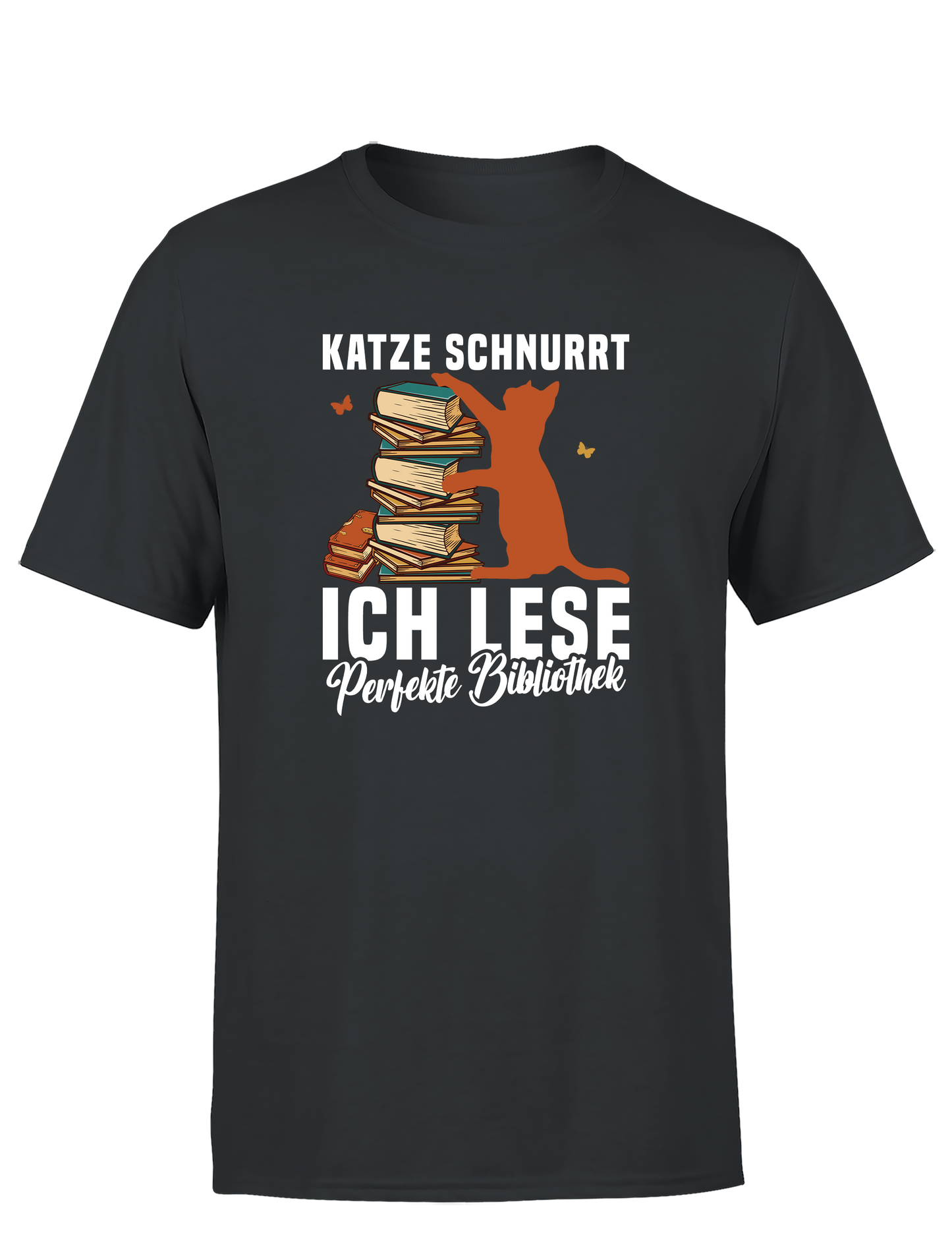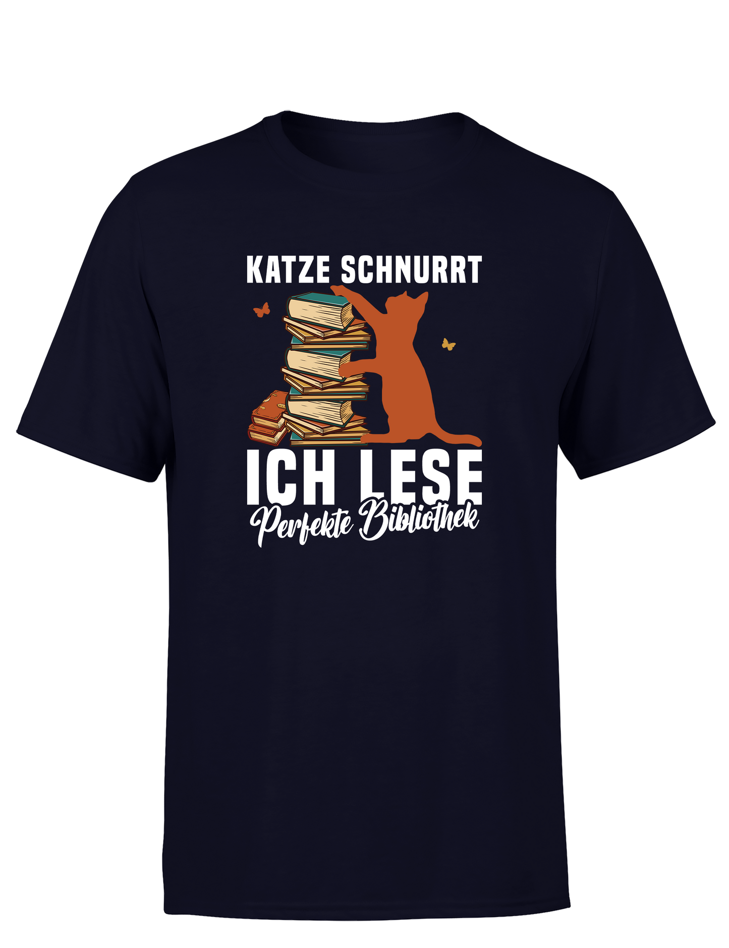 Katze schnurrt, ich lese – perfekte Bibliothek | Herren T-Shirt im Retro Stil für Katzen- & Bücherliebhaber, Freizeit & Geschenkidee