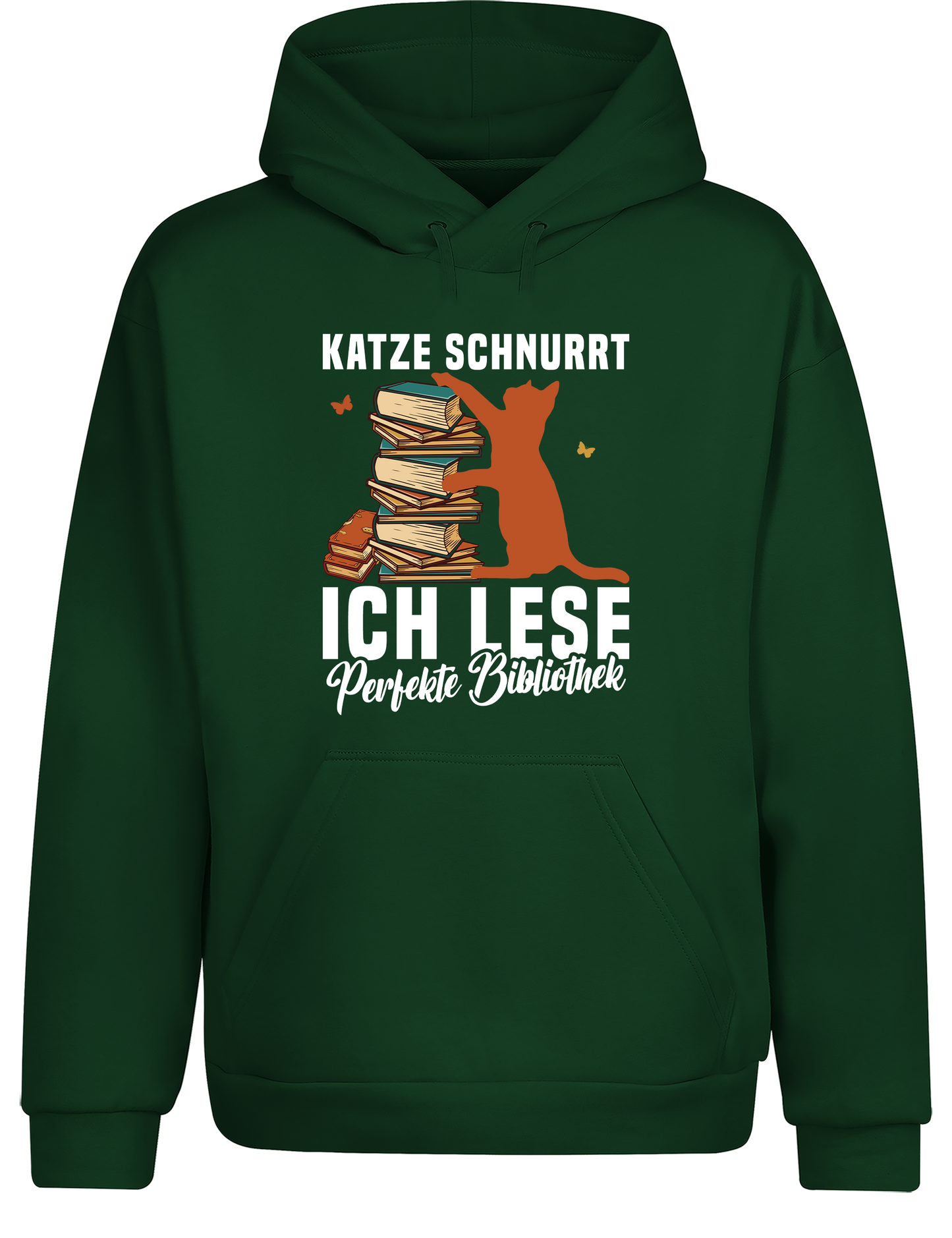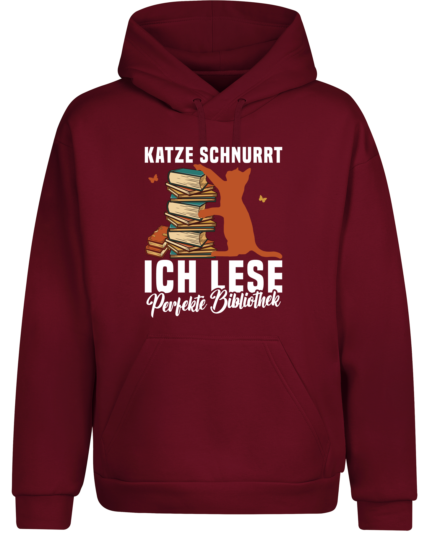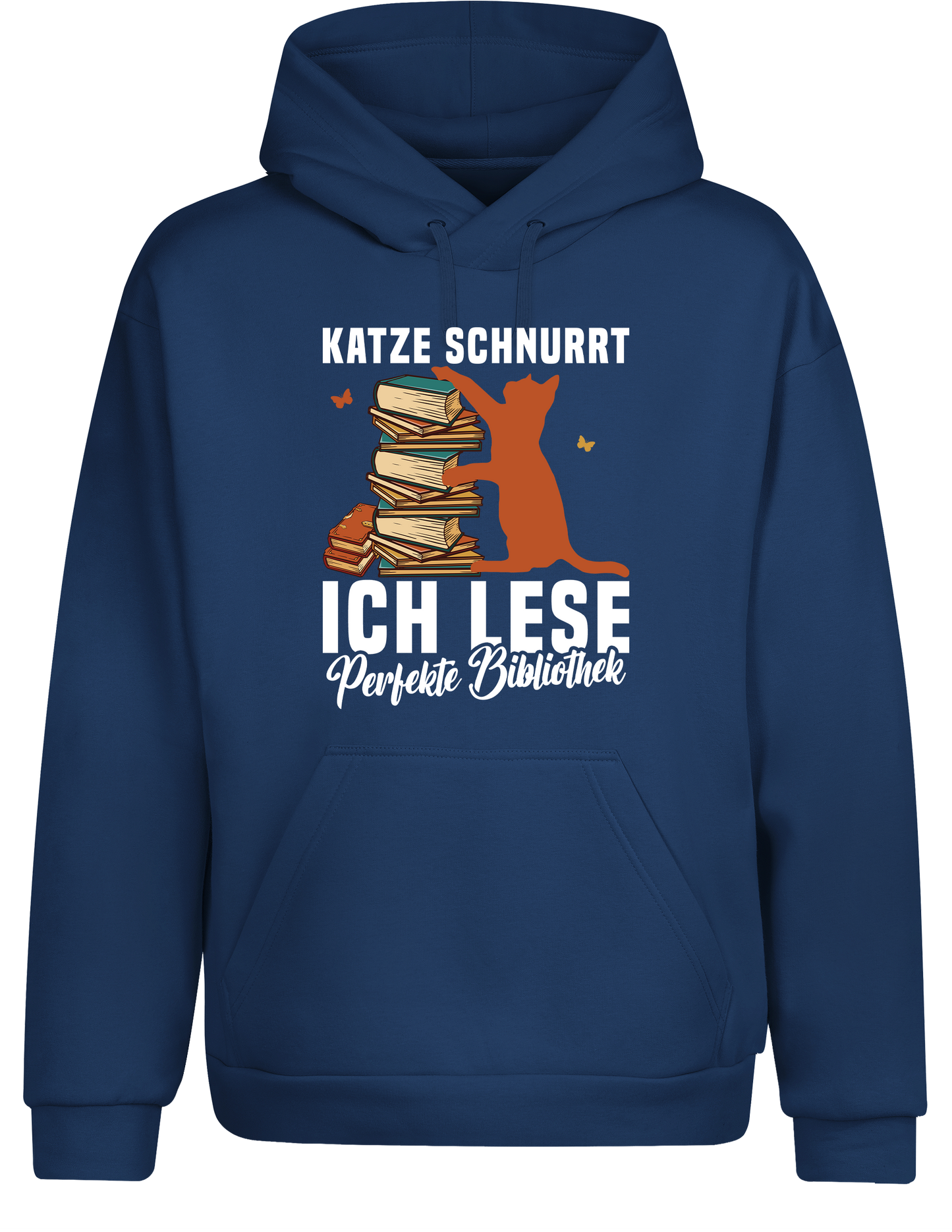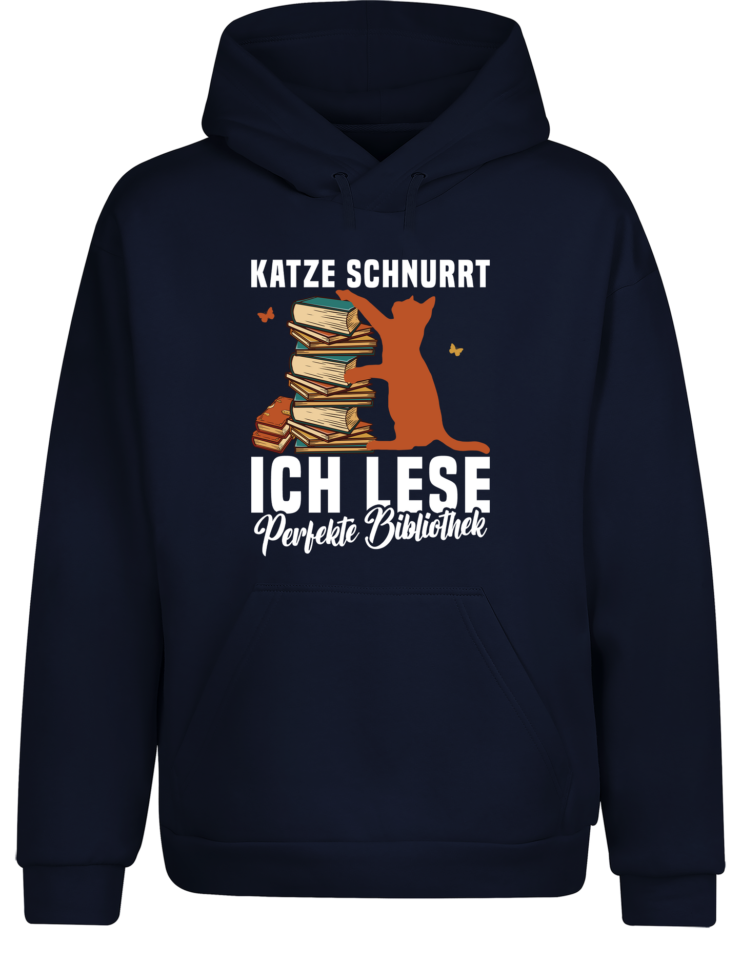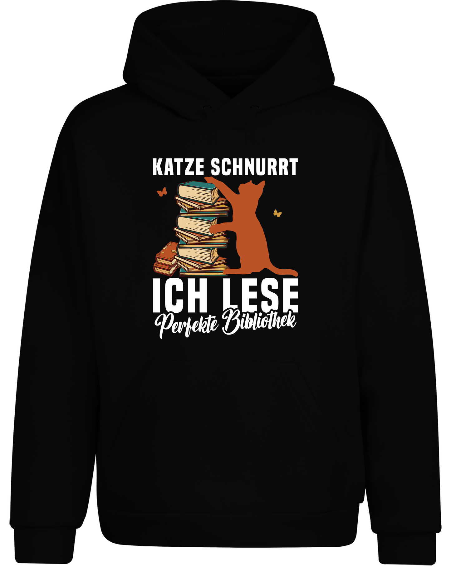 Dann wirst du diesen Kapuzenpullover mit dem Print „Katze schnurrt, ich lese – perfekte Bibliothek“ lieben!