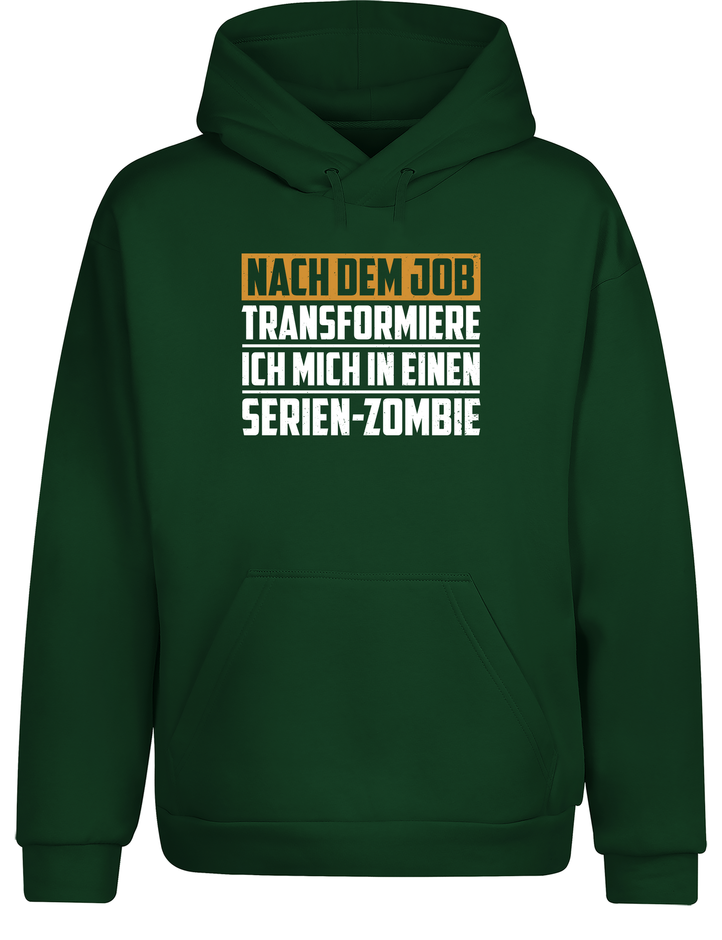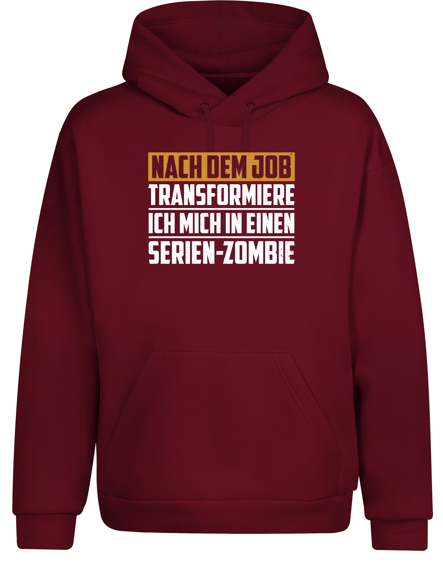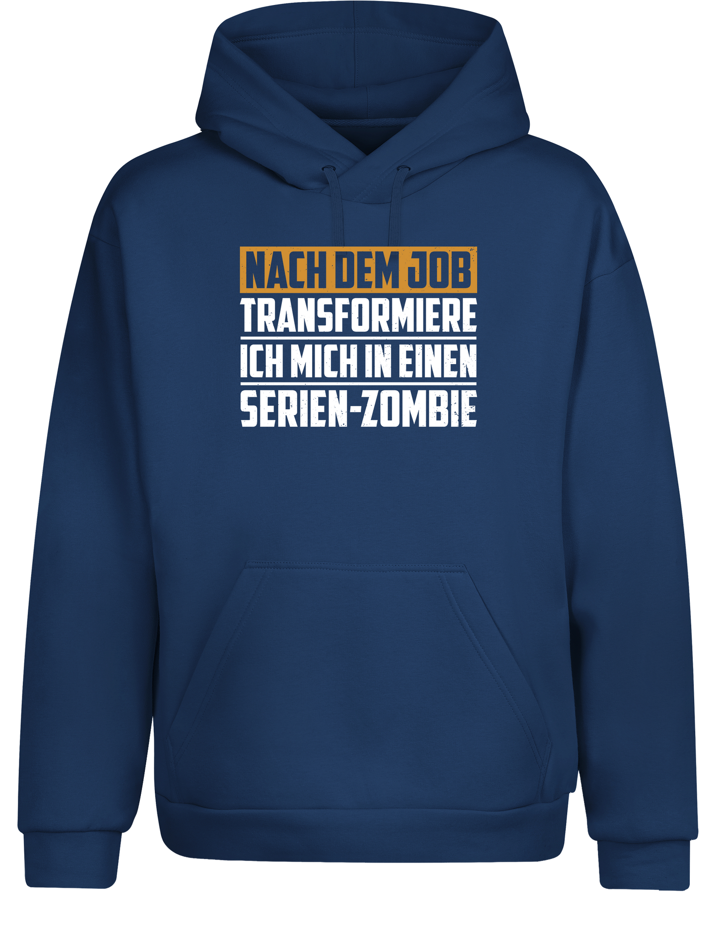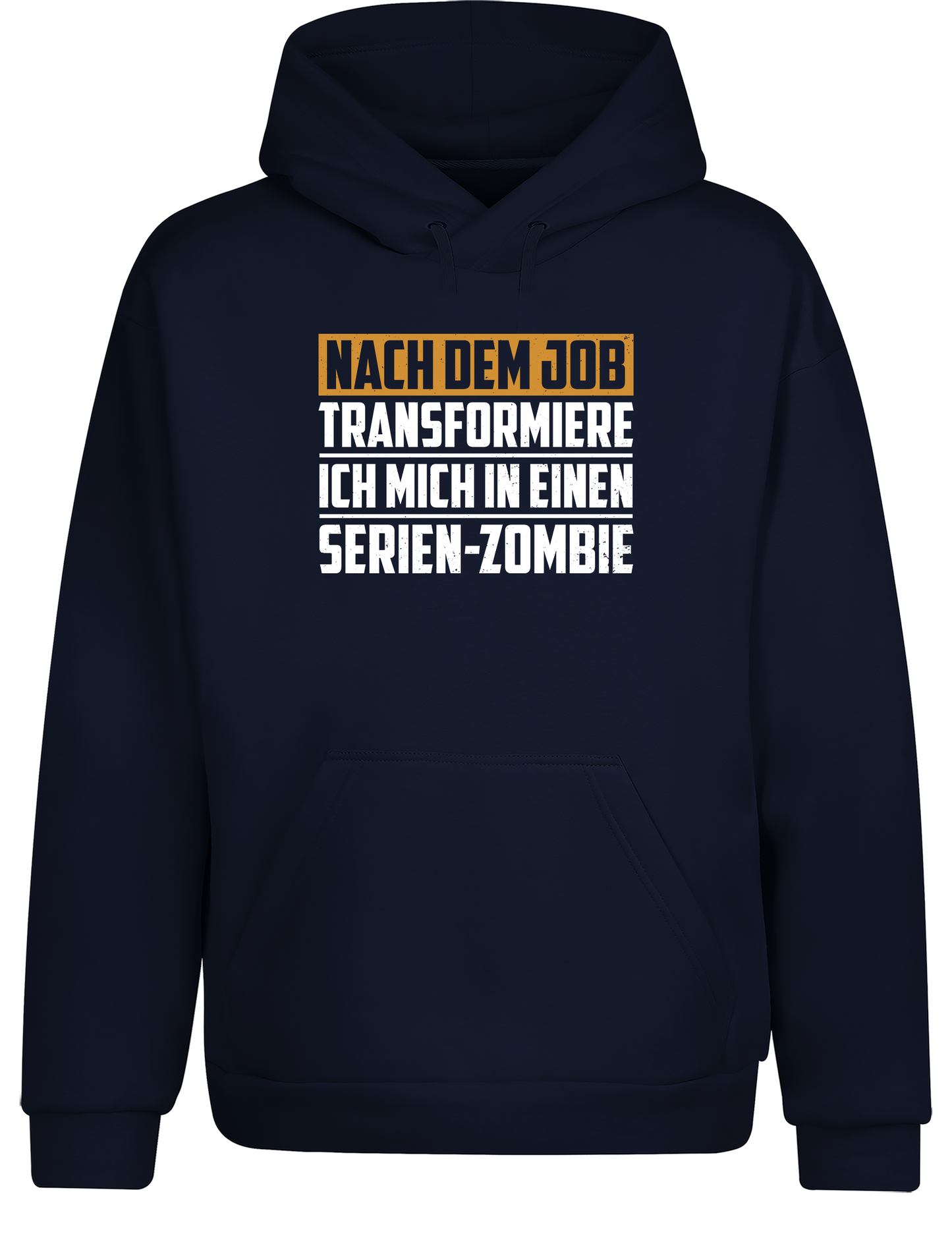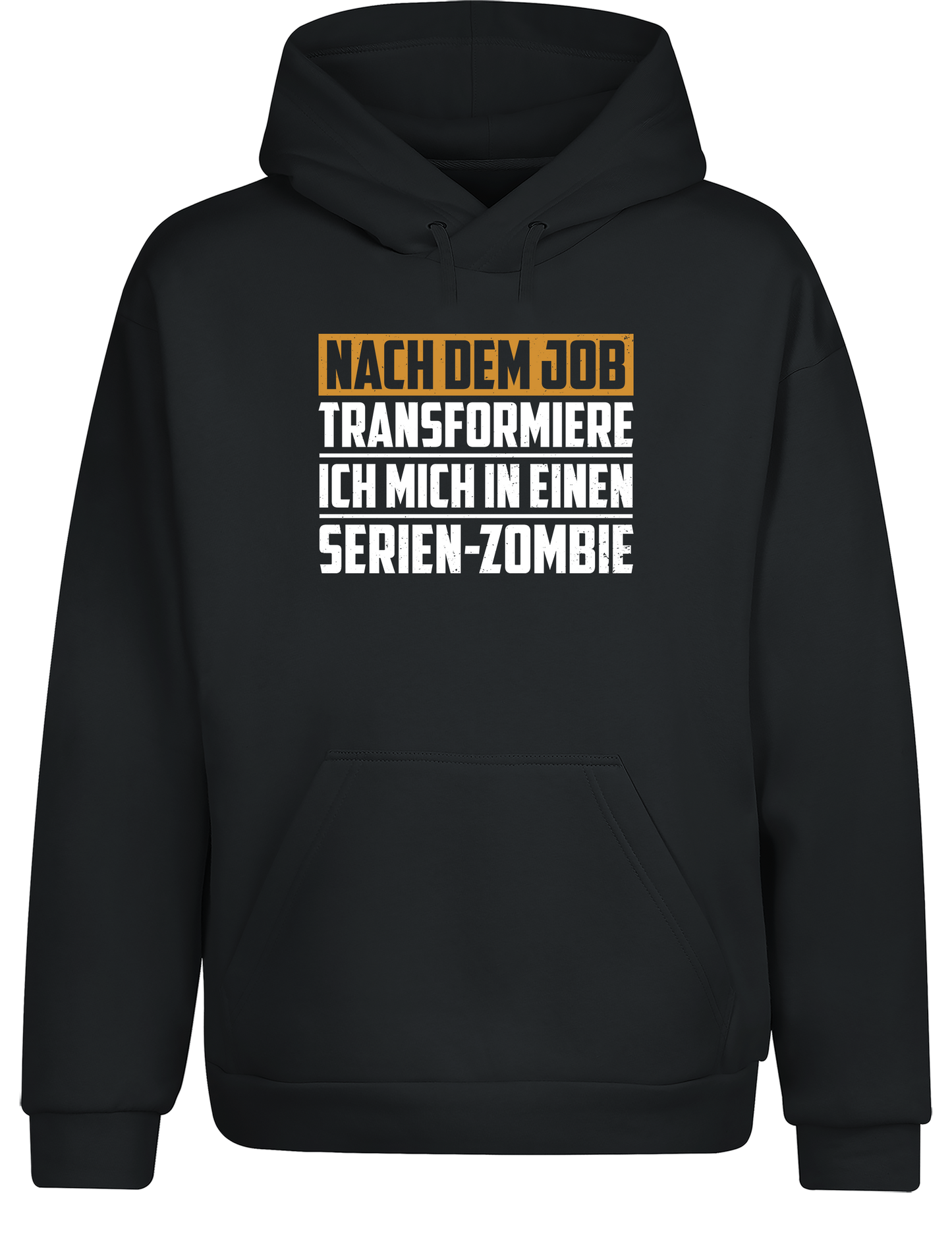 Mit dem witzigen Spruch „Nach dem Job transformiere ich mich in einen Serien-Zombie“ ist er das perfekte Outfit für Couch-Marathons.