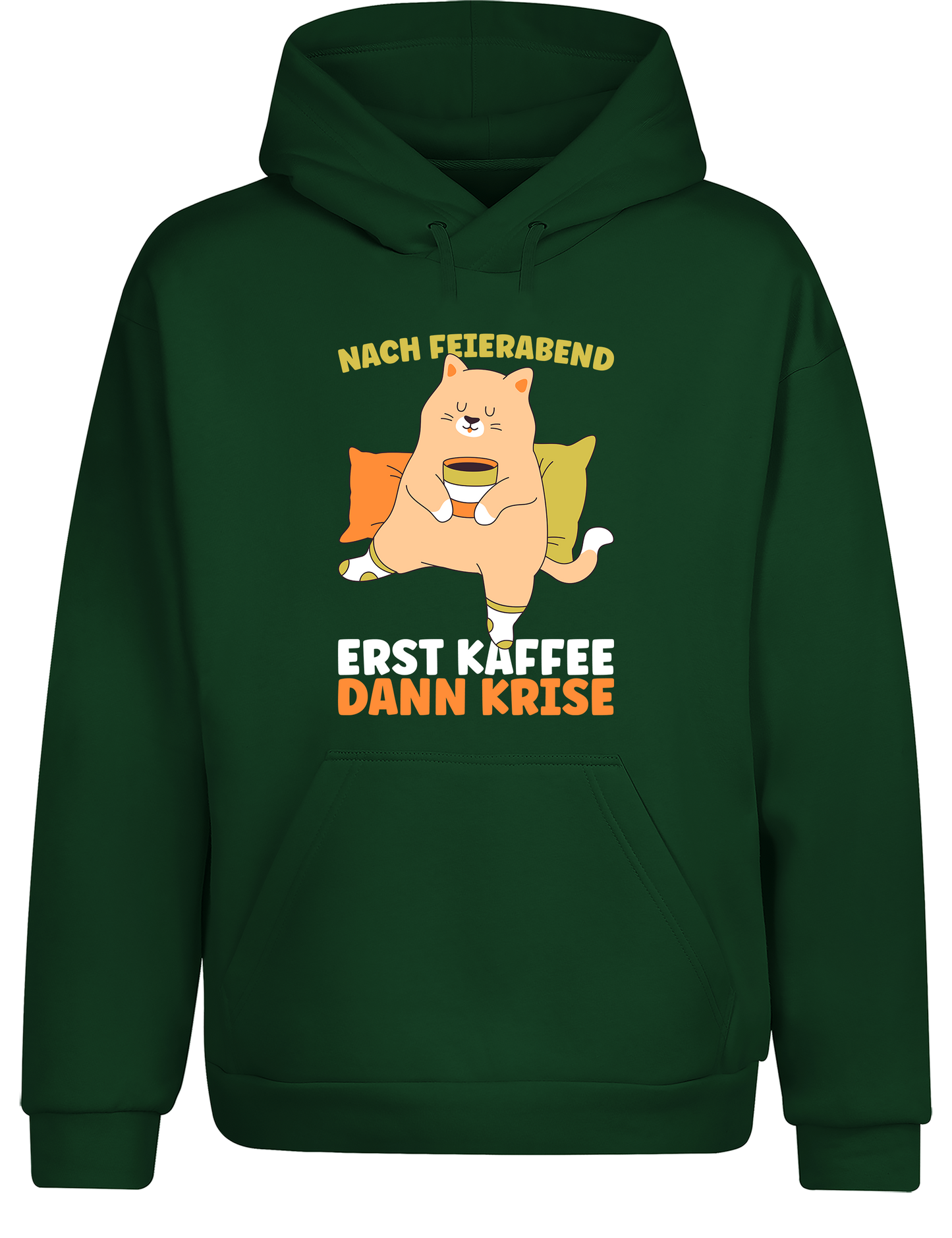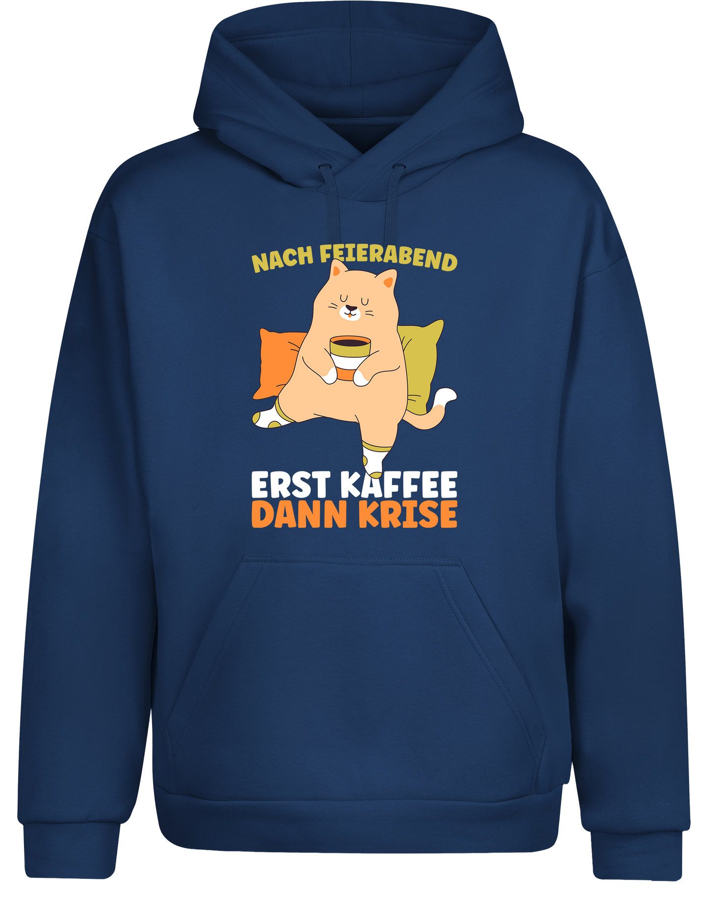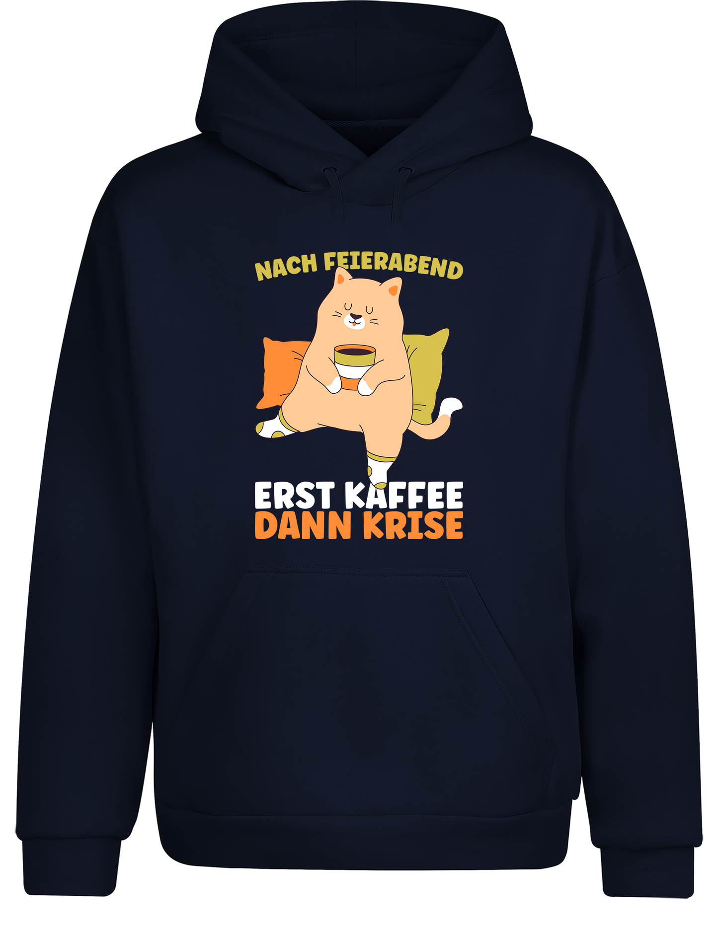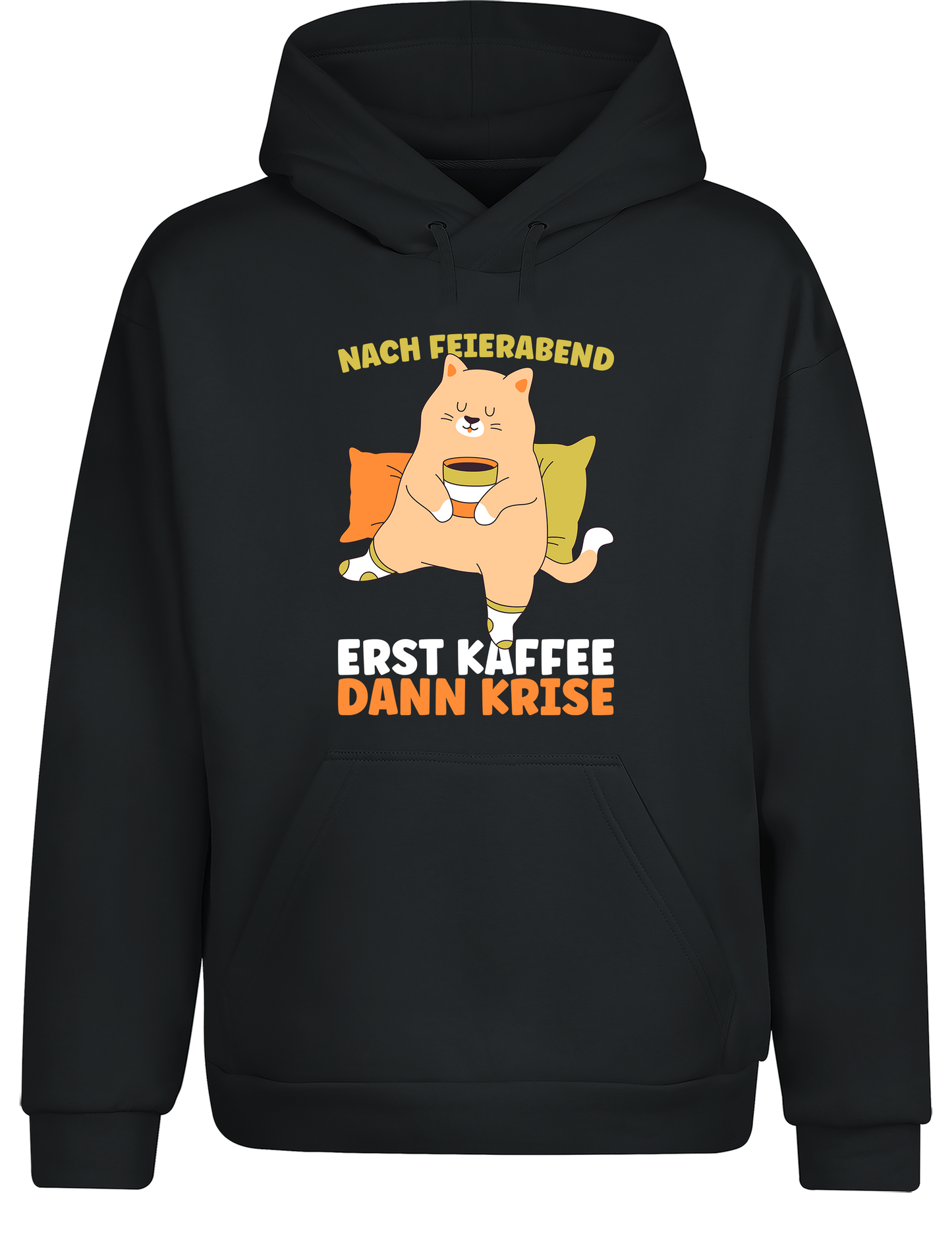 Hol dir deinen Hoodie und zeig allen: Dein Feierabend-Plan ist klar strukturiert – erst Kaffee, dann Krise!