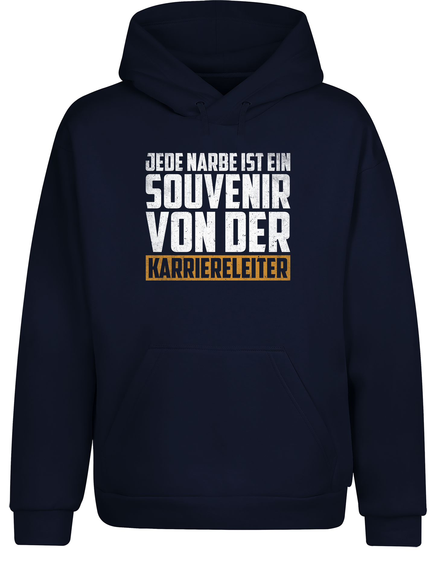 Warm, gemütlich und mit einer starken Botschaft: Der Hoodie „Jede Narbe ist ein Souvenir von der Karriereleiter“ bringt Humor und Stolz in deinen Alltag.