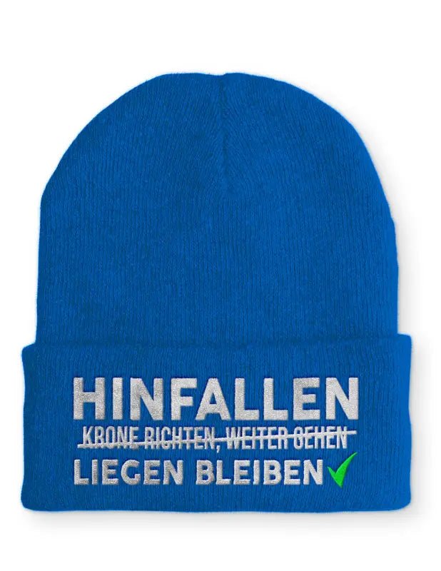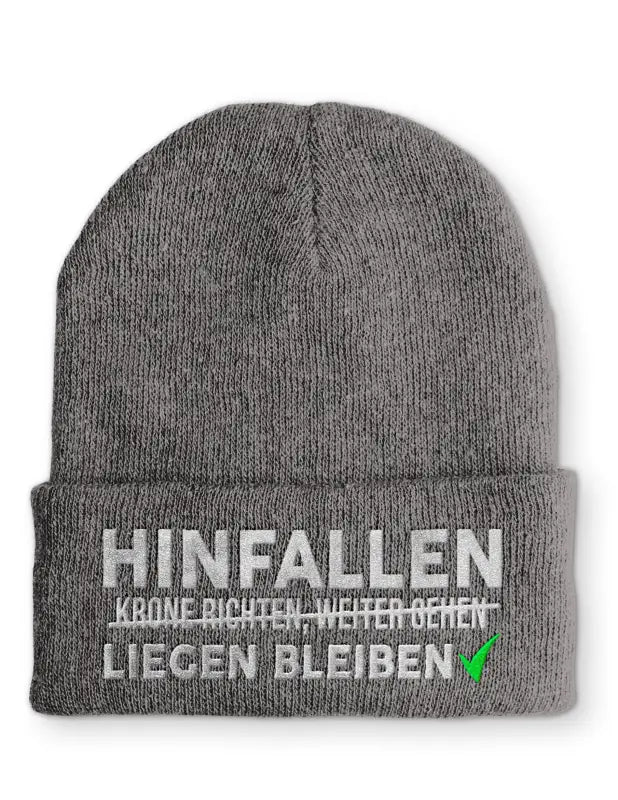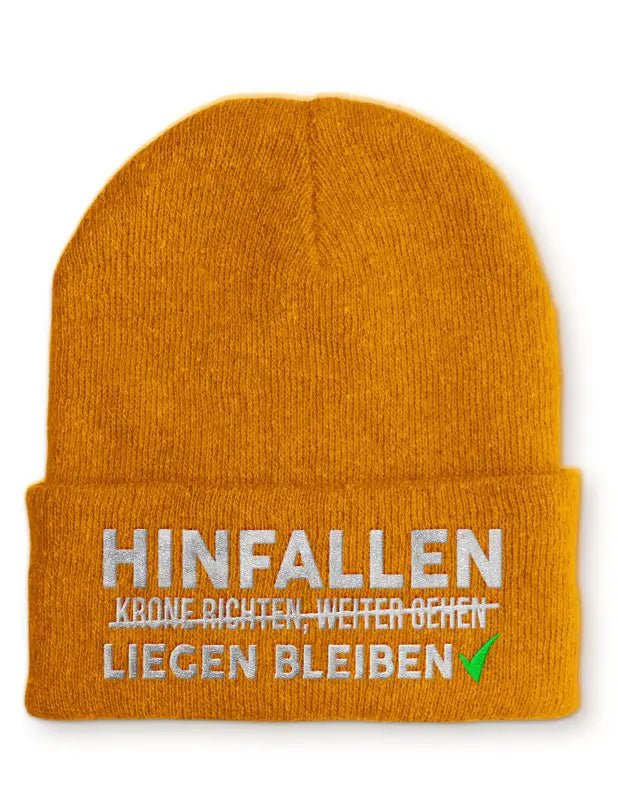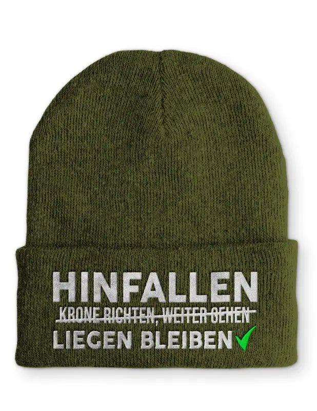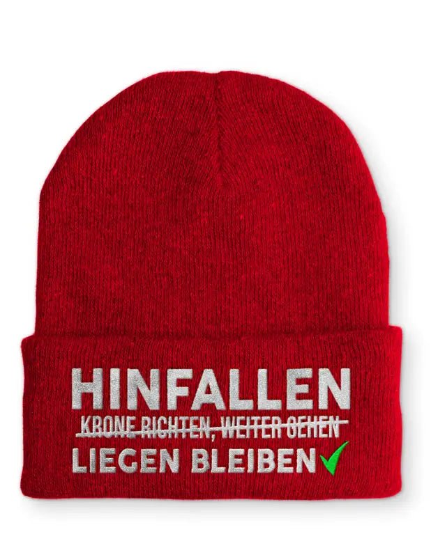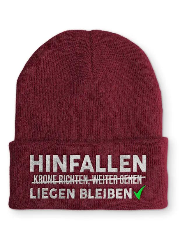 Hinfallen liegen bleiben Statement Beanie Mütze mit Spruch