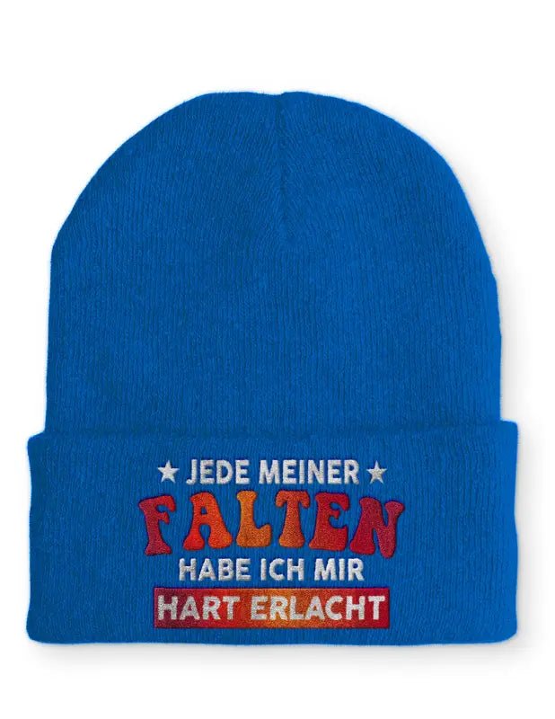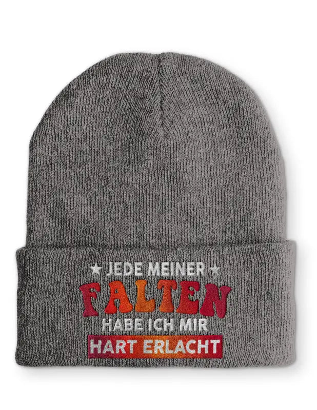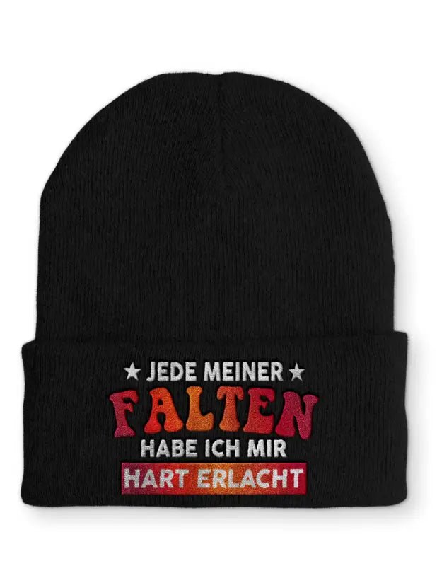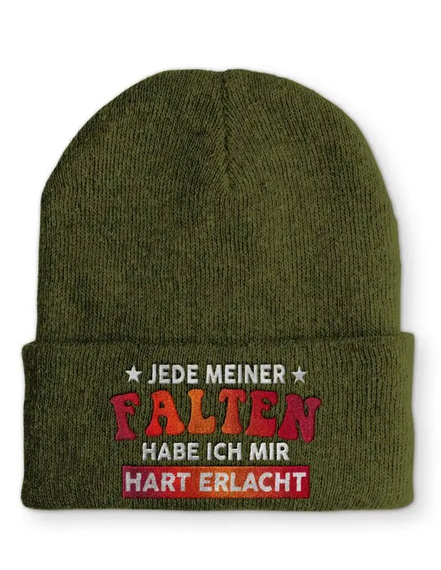 Jede meiner Falten habe ich mir hart erlacht Statement Beanie Mütze mit Spruch